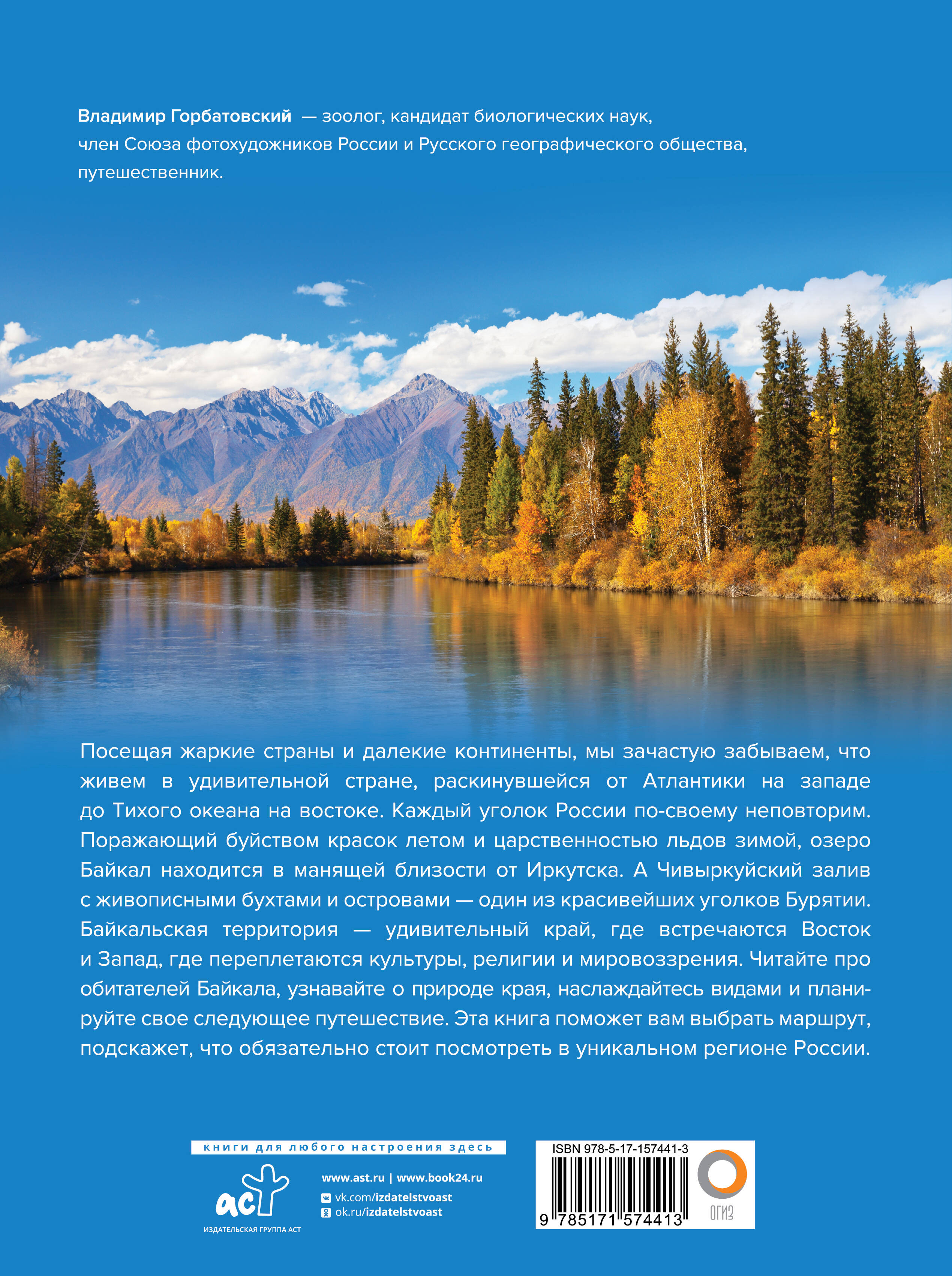 Владимир Горбатовский, автор этого своеобразного путеводителя, - зоолог, кандидат биологических наук, член Союза фотохудожников России и Русского географического общества, путешественник. В книге об уникальном регионе России: Яркие фото Байкала, территорий и обитателей природных заказников и Национальных парков. Описания мест, куда может при желании приехать каждый путешественник. Это издание - отличный подарочный альбом с информацией и фото Байкала.| Издательство | Издательство "АСТ" |
