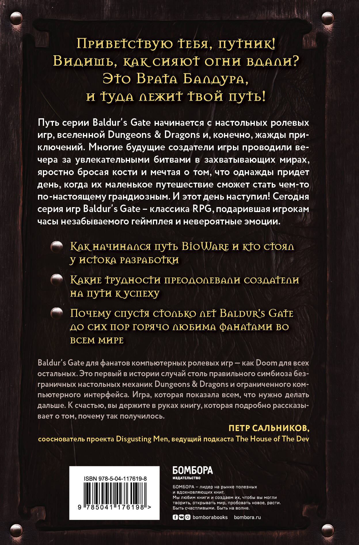 Приветствую тебя, путник! Видишь, как сияют огни вдали? Это Врата Балдура, и туда лежит твой путь! Путь серии Baldur's Gate начинается с настольных ролевых игр и вселенной Dungeons & Dragons и, конечно, жажды приключений. Многие будущие создатели игры проводили вечера за увлекательными битвами в захватывающих мирах, яростно бросая кости и мечтая о том, что однажды придет день, когда их маленькое путешествие сможет стать чем-то по-настоящему грандиозным. И этот день наступил! Сегодня серия игр Baldur's Gate - классика RPG, подарившая игрокам часы незабываемого геймплея и невероятные эмоции. Вы узнаете: - Как начинался путь BioWare и кто стоял у истока разработки. - Какие трудности преодолевали создатели на пути к успеху. - Почему спустя столько лет Baldur's Gate до сих пор горячо любима фанатами во всем мире.| Издательство | ООО "Издательство "Эксмо" |