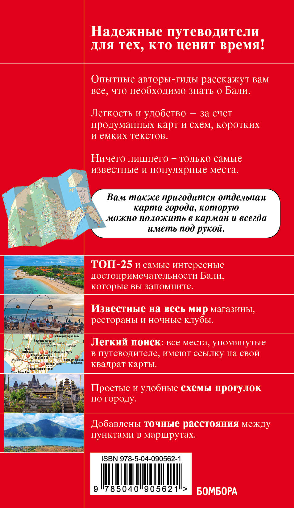 Перед вами экспресс-гид по райскому острову Бали. В нем содержится краткая информация об острове, советы, как лучше провести первый и второй день, и 25 главных достопримечательностей. Также в книге вы найдете описания самых интересных мест каждого района острова. Гуляйте, купайтесь, знакомьтесь, восхищайтесь культурой и ритмом жизни Бали и получайте нужную информацию в режиме нон-стоп! К изданию прилагается подробная карта города.| Издательство | ООО "Издательство "Эксмо" |