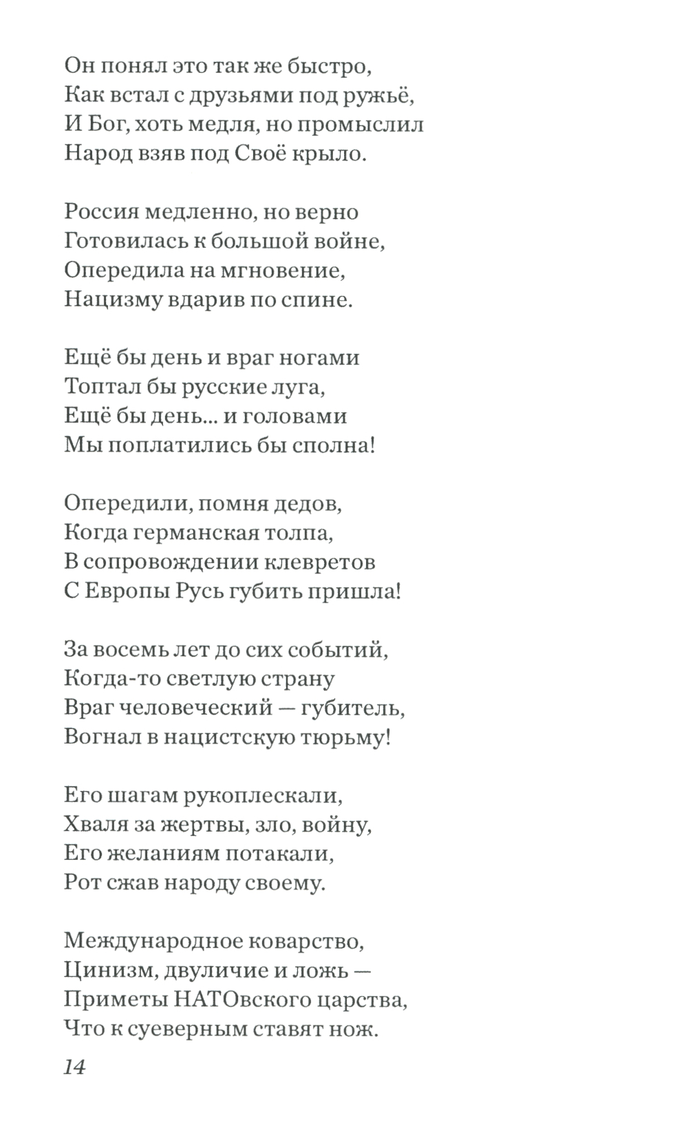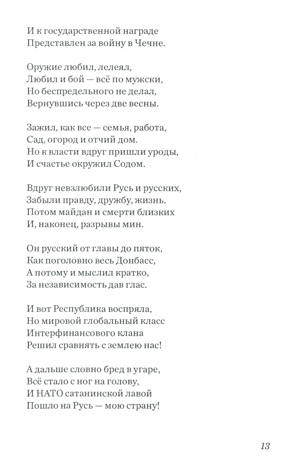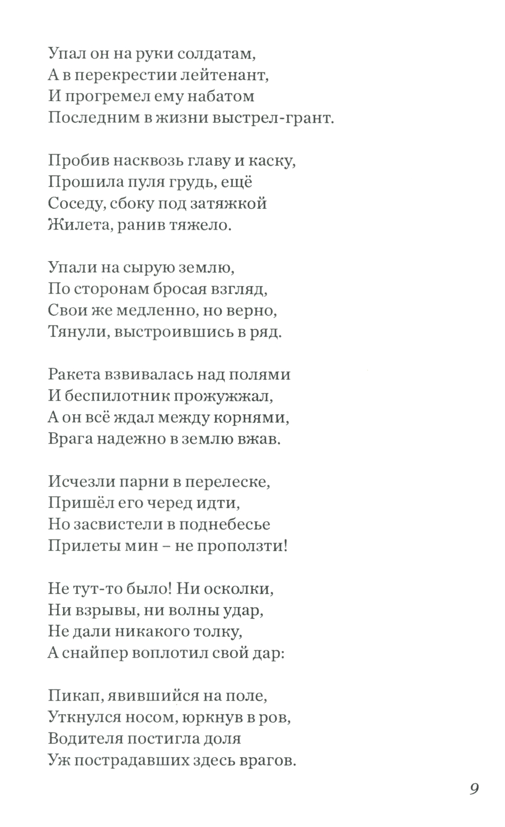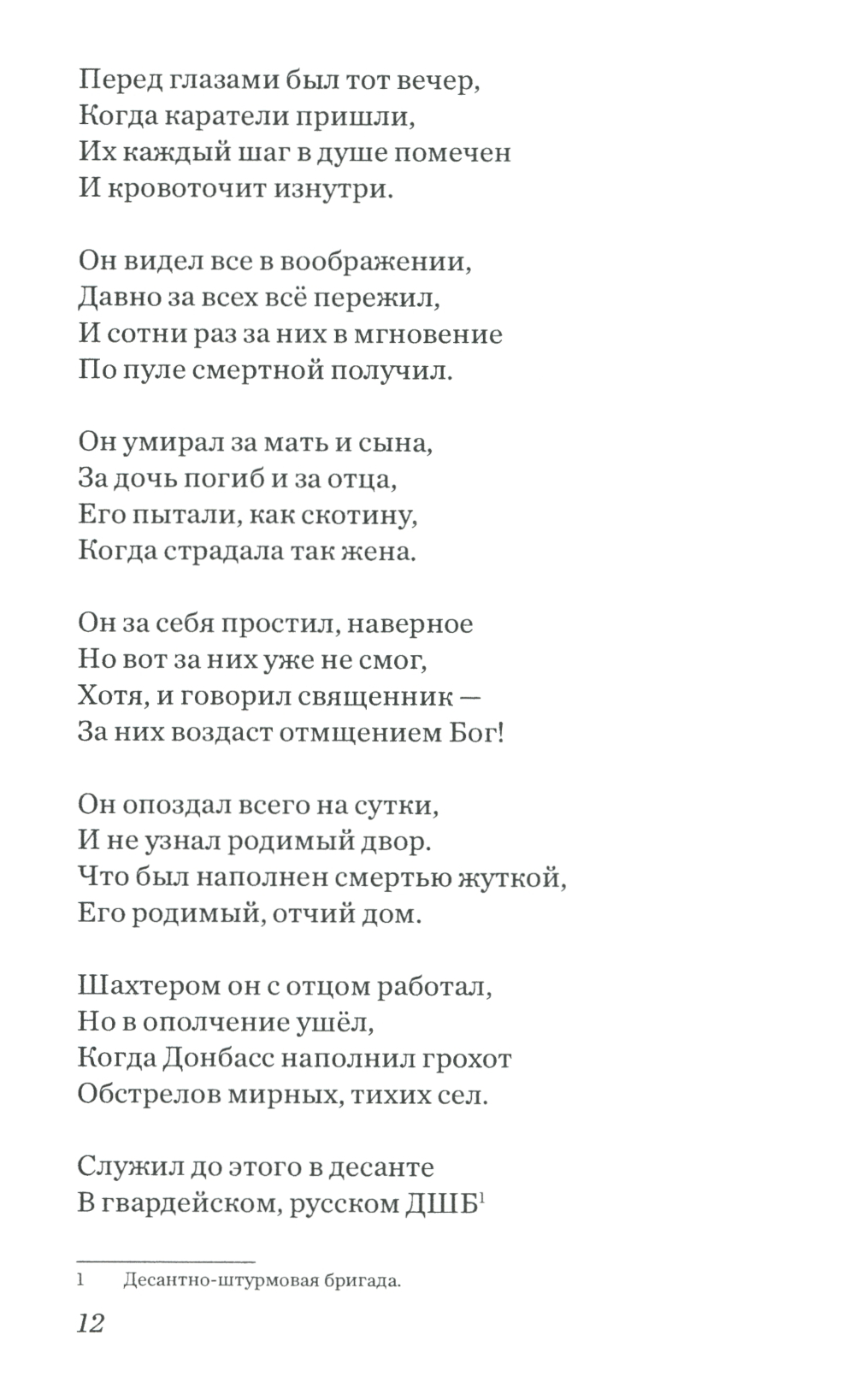 Фронтовая поэзия - особый жанр русского стихосложения нынешнего и предыдущих веков. В лирической форме драматической поэмы автор, прошедший суровую жизненную школу, выразил надежды и чаяния солдата-снайпера, сражающегося на фронте за спасение России. Специальная военная операция, каки в годы Великой Отечественной войны, сплотила русский российский народ на борьбу с безжалостным иноземным врагом - с «либеральной» антицивилизацией Запада.| Издательство | Книжный мир |