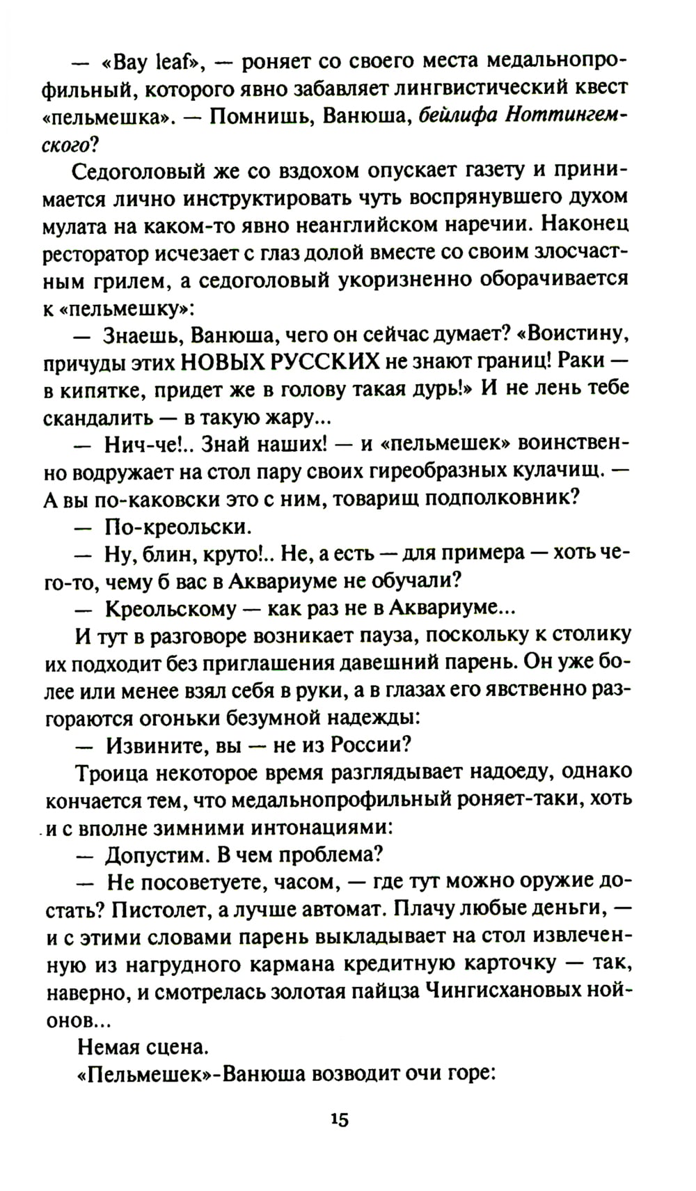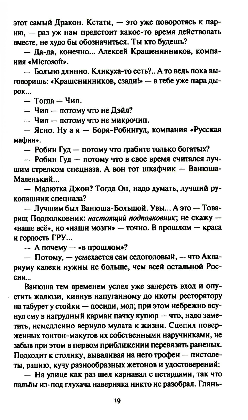 Читателя ждет новая встреча со столь полюбившимися всем нам благородными разбойниками, сменившими - сообразно эпохе - свои зеленые плащи линкольнского сукна на малиновые пиджаки. На сей раз Боре-Робингуду сотоварищи придется заняться - ни много ни мало - спасением Мира, который уже попал конкретно, но, как водится, сам об этом даже не подозревает... Заслуженный конспиролог Союза ССР Кирилл Есь-ков, вскрывший уже подноготную и Евангельских событий («Евангелие от Афрания»), и истории Толкиеновского Средиземья («Последний Кольценосец») прямо на глазах у почтеннейшей публики сорвет покров тайны с самых загадочных событий современности: теракты 11 сентября, убийство президента Кеннеди, и прочая, и прочая! Итак - следите за руками! (Барабанная дробь.) Вуаля!.. Маэстро, урежьте туш!!!| Издательство | Престиж Бук |