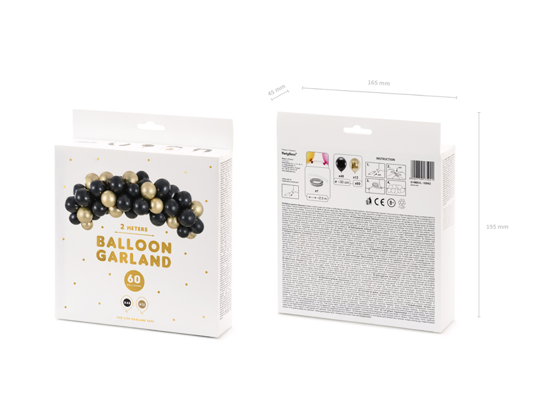 Balloon garland - black and gold, 200cm (1 pkt / 60 pc.)