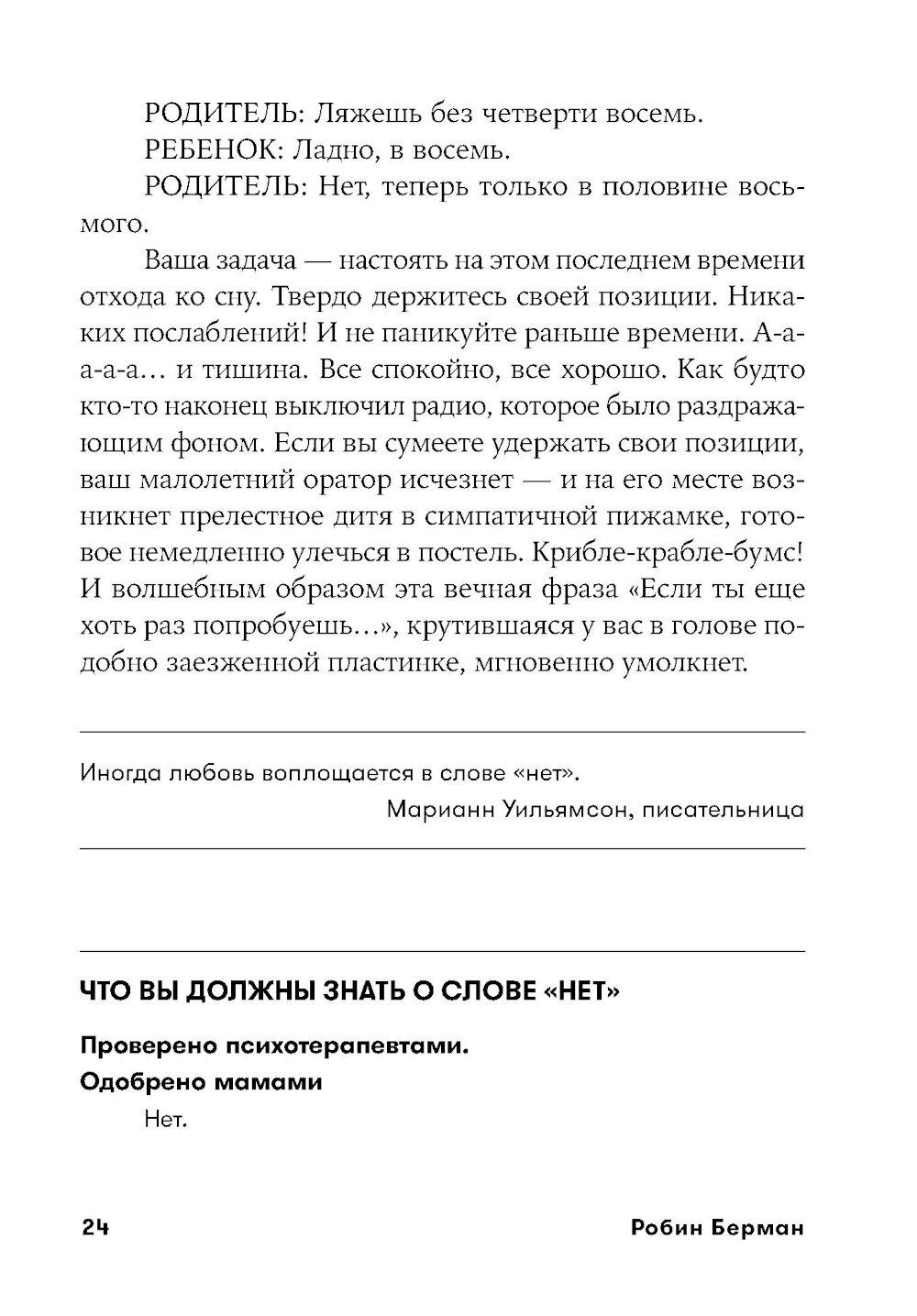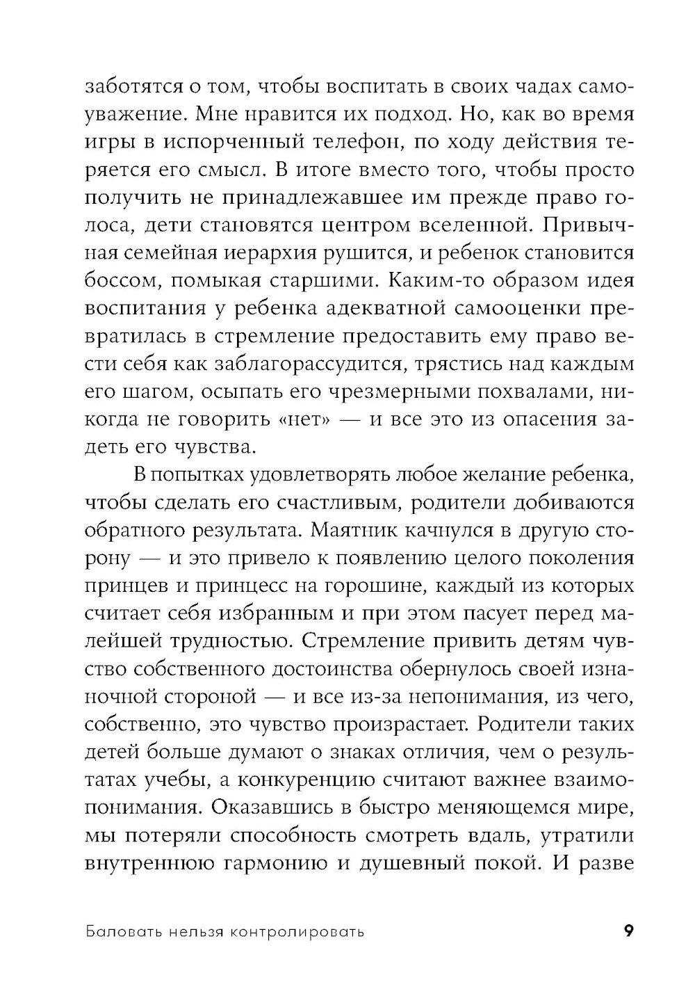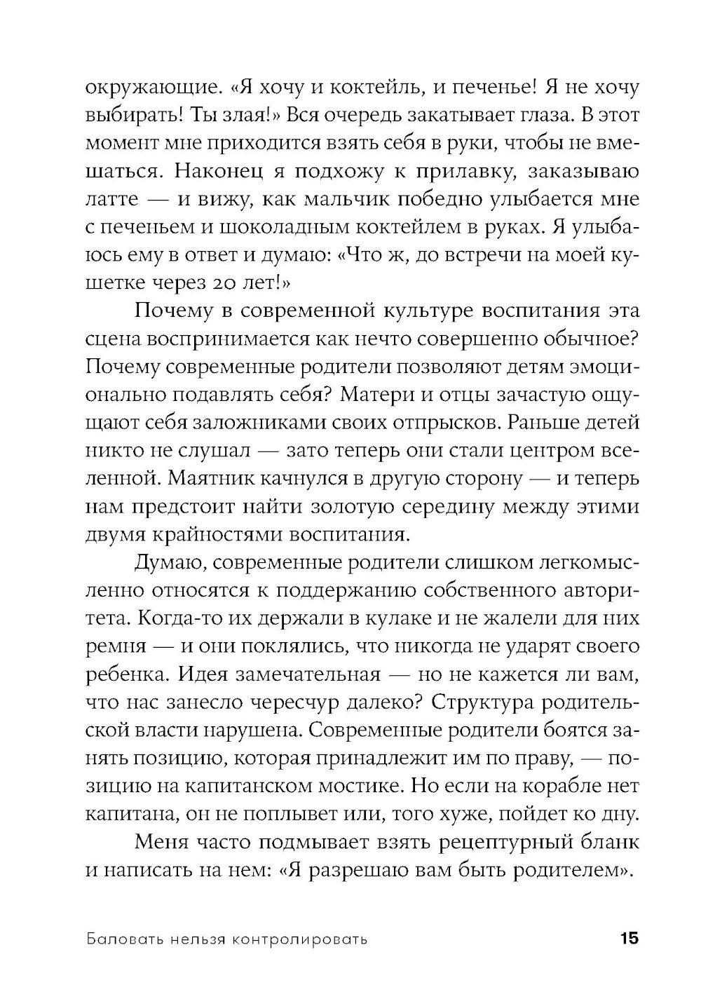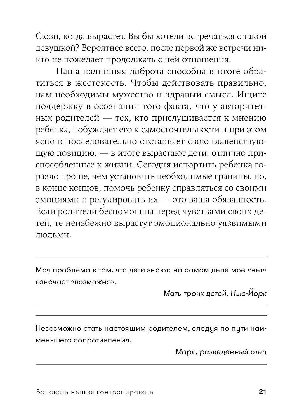 Современные родители впали в очередную педагогическую крайность: сегодня считается правильным всячески баловать, поощрять детей, одобрять каждый их шаг и ни в коем случае не ругать и не огорчать. Звучит вроде бы неплохо, однако на деле такой подход угрожает психологическому здоровью будущих поколений не меньше, чем родительская тирания, общепринятая для прошлых десятилетий. Избалованные, не привыкшие к самостоятельности дети вырастают инфантильными и фактически незрелыми личностями.| Издательство | Альпина Паблишер |