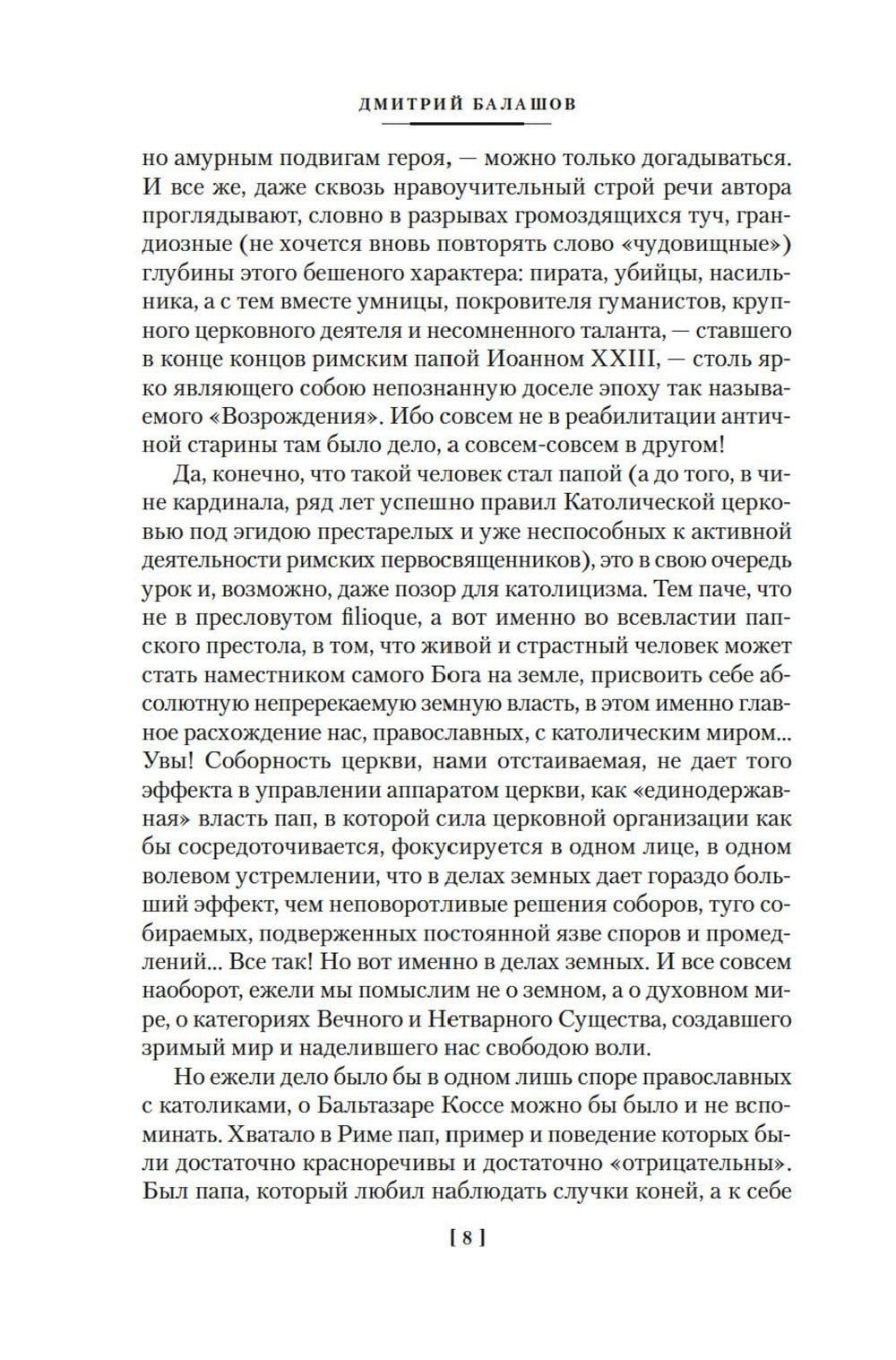 Бальтазар Косса - человек, имя которого окутано легендами. Он вошел в историю под именем папы римского Иоанна XXIII, но и половины из приписываемых ему грехов хватило бы самому великому грешнику. Более пяти веков имя Иоанн - до того особенно популярное среди понтификов - считалось запятнанным, поскольку в начале XV века его присвоил себе Косса, снискавший славу пирата, убийцы и развратника... «Бальтазар Косса» - последний законченный роман писателя, филолога Дмитрия Михайловича Балашова, автора грандиозного цикла «Государи Московские». На сей раз приглашая читателей отправиться в бурную эпоху Великого раскола Римской церкви, Дмитрий Балашов предлагает свое видение личности Бальтазара Коссы, Иоанна XXIII, - то ли оклеветанного недоброжелателями, то ли в самом деле заслужившего свою мрачную славу. В настоящий сборник вошли также повести и рассказы Дмитрия Балашова.| Издательство | Азбука |