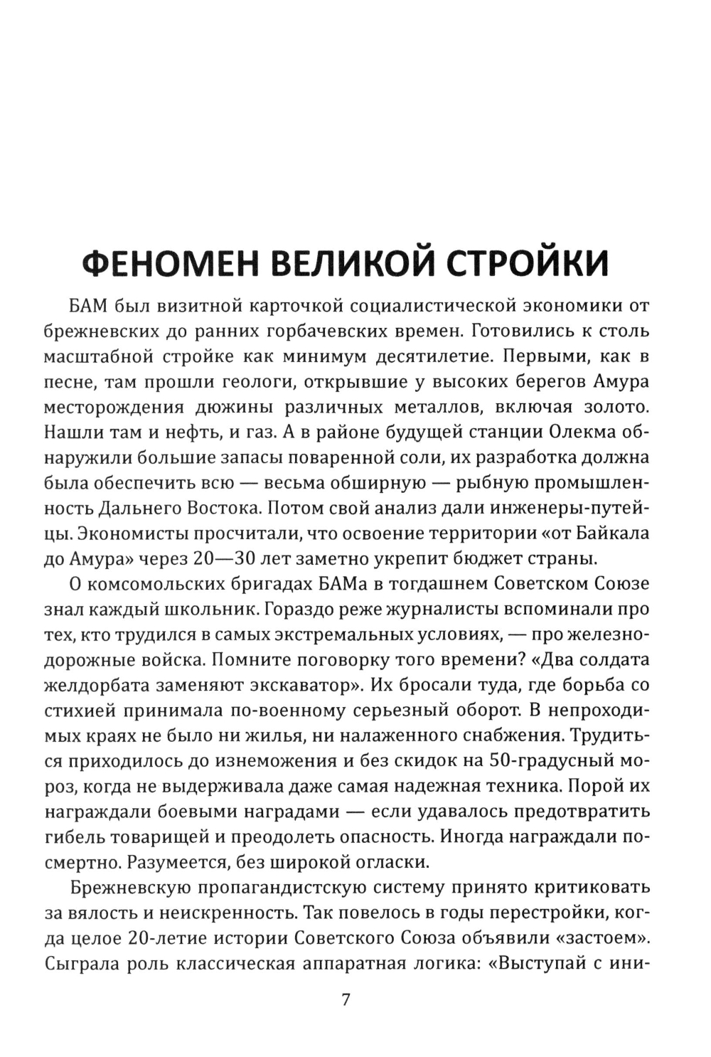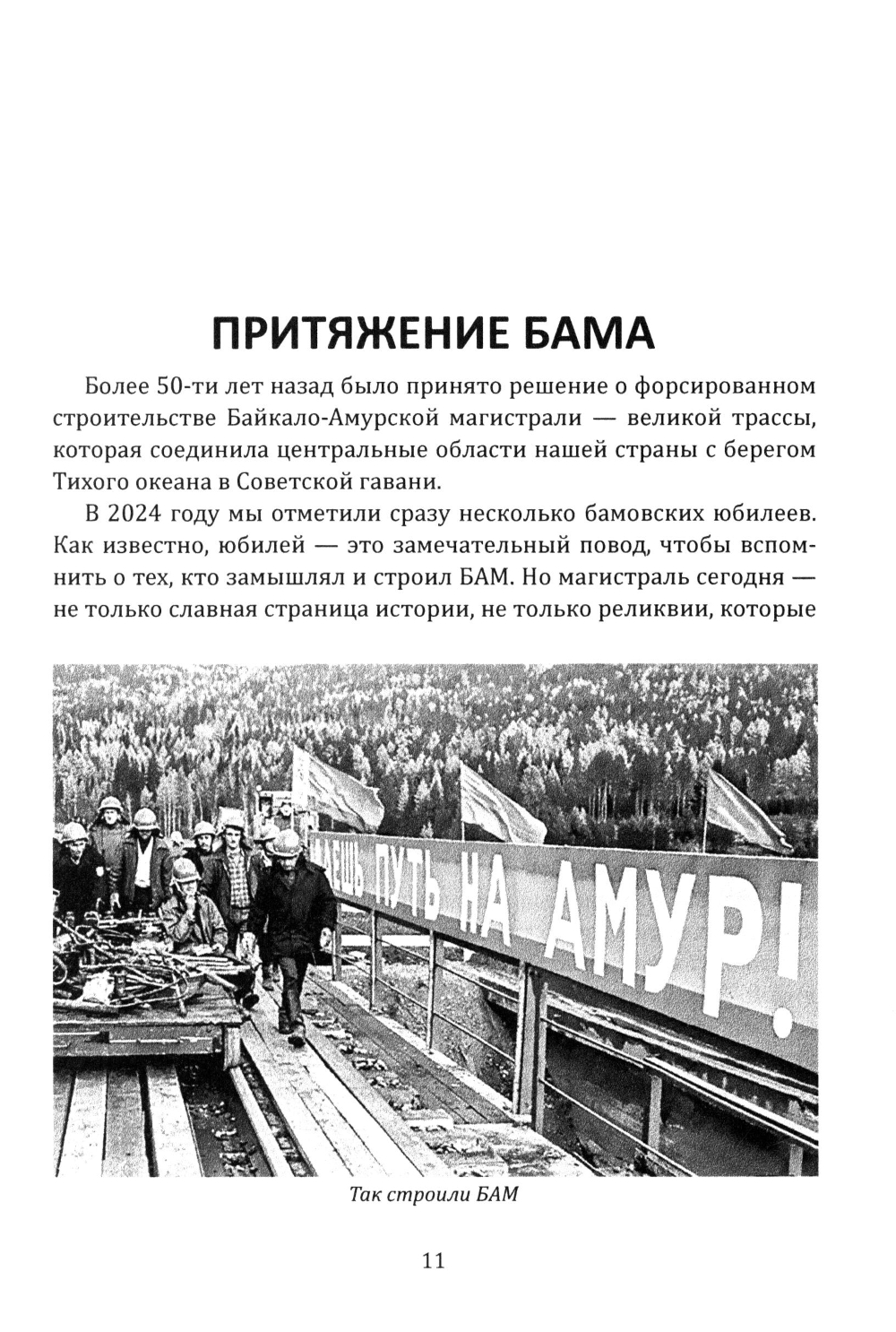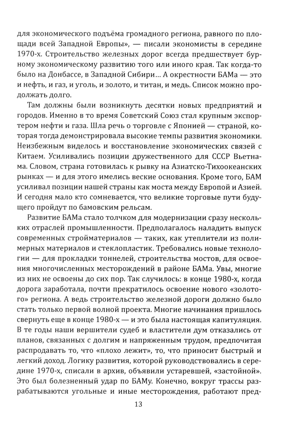 БАМ - последняя и самая грандиозная из великих строек социализма. Ее форсированное строительство началось в 1974 году и продолжалось 10 лет. В это время советские люди ежедневно слушали репортажи с Магистрали и песни, в которых прославлялись герои БАМа. Бамовцы пробивались в тайгу, упокоряли вечную мерзлоту, возводили города и заводы. В этой книге рассказано о строителях Магистрали - от глав государства до знаменитых бригадиров и рабочих. Перед вами пройдет вся история БАМа - от жертвенных подвигов изыскателей до модернизации, которая проходит в наше время. Время доказало, что БАМ необходим России. И как связующее звено в Китаем, и как основа будущей важной экономической зоны. Ведь в окрестностях Магистрали спрятана «вся таблица Менделеева». Поэтому БАМ - это больше, чем железнодорожная трасса, а феномен, который нужно изучать с разных сторон. Ему и посвящена эта книга.| Издательство | Родина |