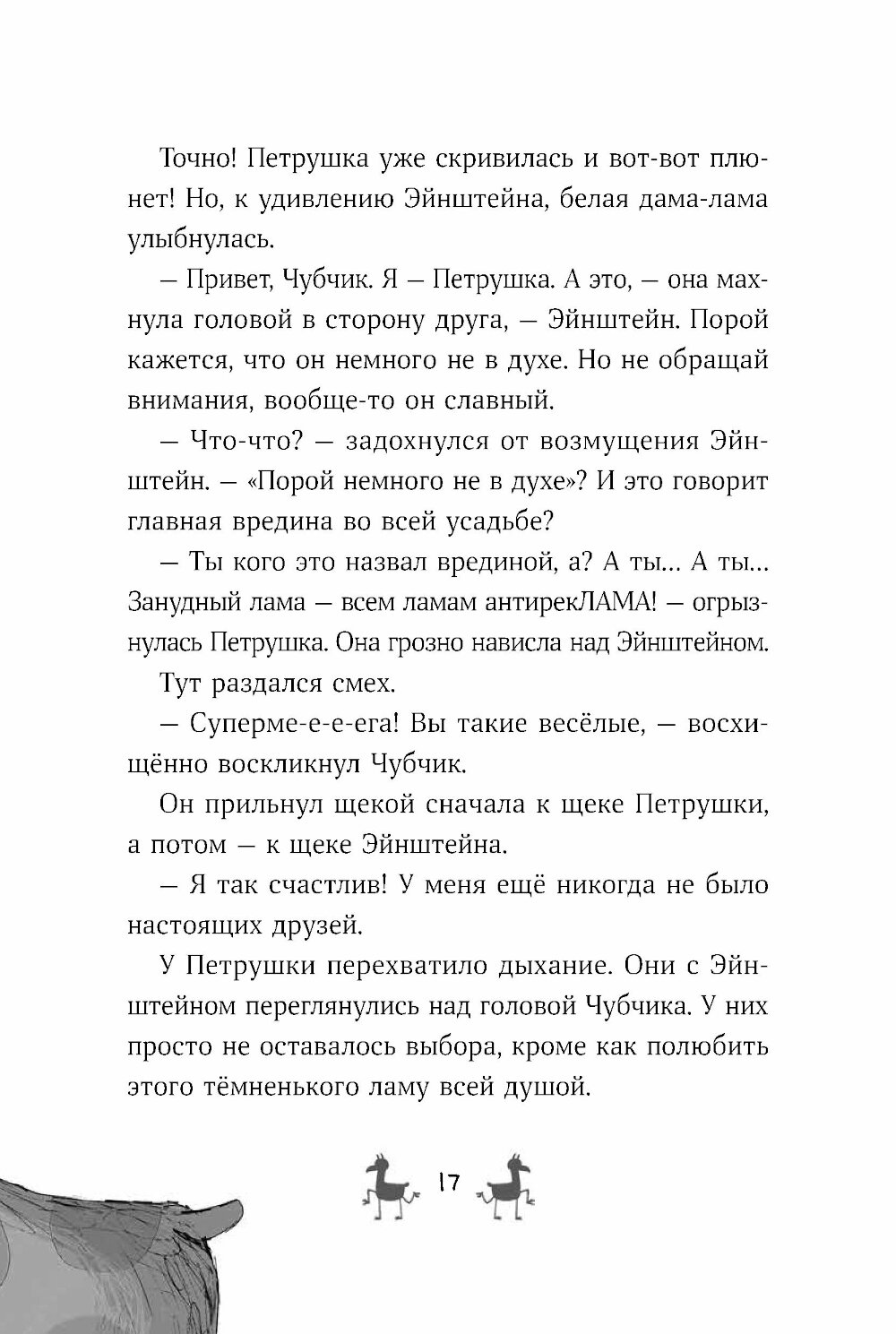 Шерлок Холмс - это вчерашний день. Пришло время «Банды лам»! На ферме семьи Зонненшайн все стоят на ушах! Ночью кто-то пробрался в дом и украл... всего лишь старую картину и два серебряных кубка. Ребята решают провести расследование и найти вора. Как бы не так! Ламы Петрушка, Эйнштейн и Чубчик докажут, что они намного умнее этих двуногих и в два счёта раскроют преступление. ПрофессиоЛАМЫ в деле!| Издательство | Альпина Паблишер |