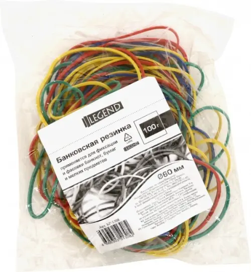 Банковская цветная резинка применяется для фиксации банкнот, бумаг и мелких предметов.<br /> Диаметр: 60 мм.<br /> Вес: 100 грамм.
