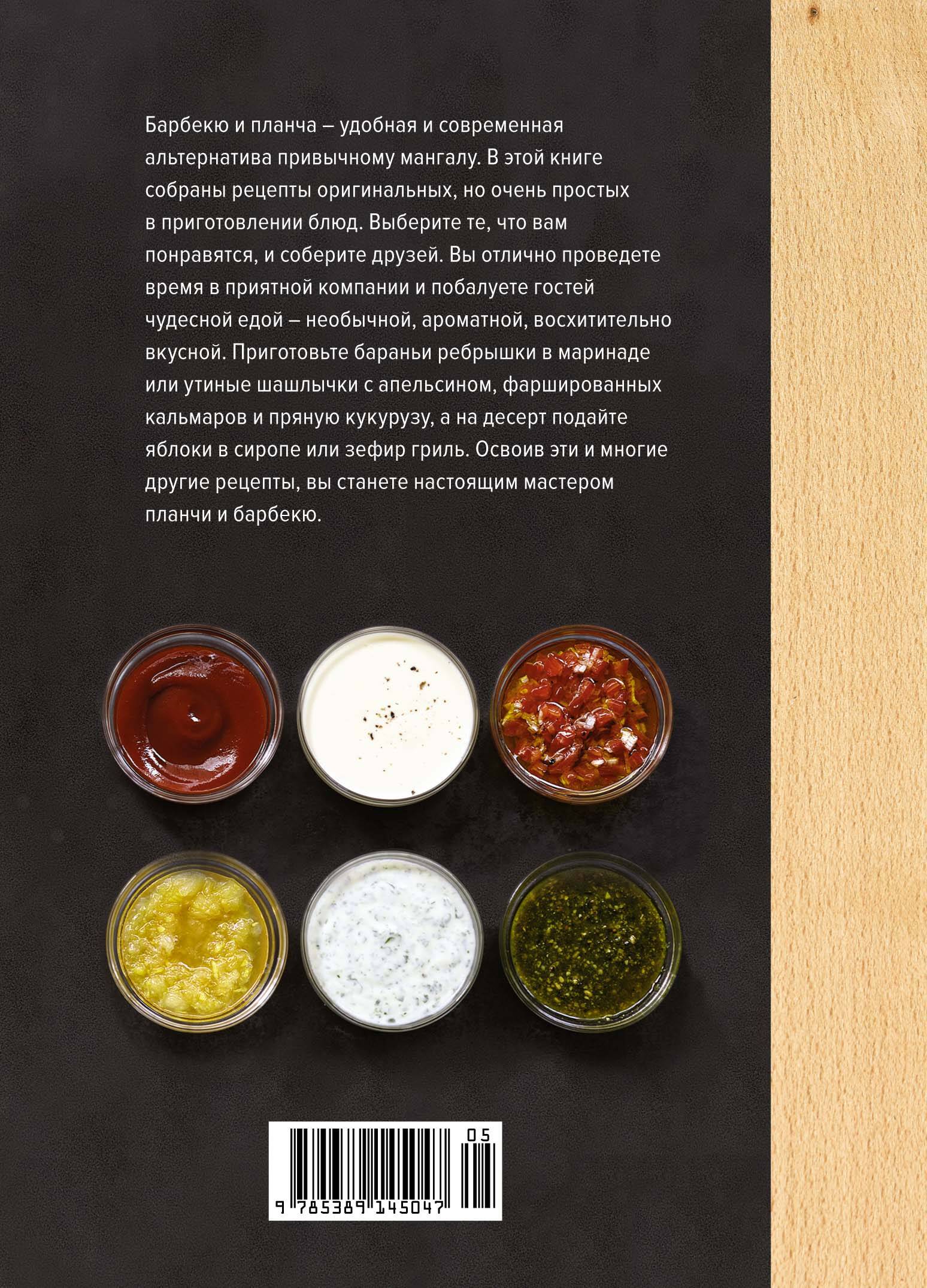 В этой книге представлены простые и практичные рецепты блюд, которые готовятся на планче (плоском гриле) и решетке барбекю. Мясо, рыба, овощи и даже десерты - словом, блюда на любой случай и на любой вкус. Авторы предлагают разнообразные маринады, соусы, гарниры - все, что нужно для вкусной и обильной трапезы в дружеской компании.