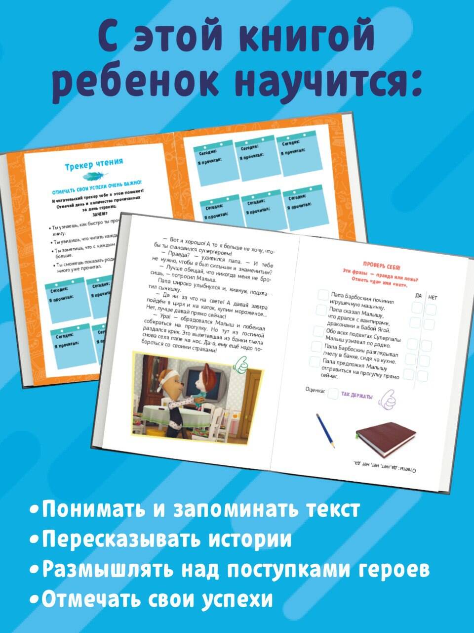 Встречайте сборник лучших историй о Барбоскиных в уникальном формате для активного чтения! Гена решит пройти курс обучения магии, Лиза отправится на поиски сокровищ, Тимоха и Дружок выяснят, кто из них уступчивее, дедушка придумает, как отвлечь внуков от гаджетов, а Малыш заведёт неожиданного питомца. Узнайте, какие ещё приключения ждут дружное семейство! С этой книгой ты научишься: • Лучше понимать текст. • Запоминать все-все детали. • Использовать воображение. • Легко пересказывать истории. • Размышлять над поступками героев. • Отмечать свои успехи.| Издательство | ООО "Издательство "Эксмо" |