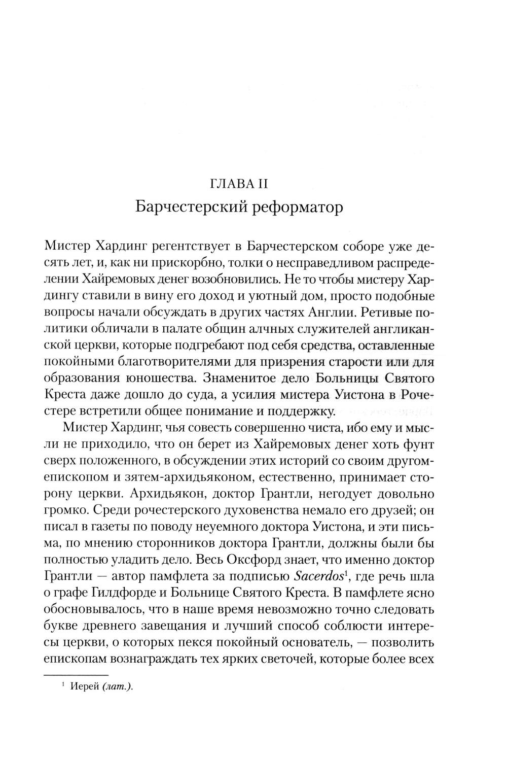 Энтони Троллоп - британский классик, современная популярность которого в англоязычном мире может сравниться разве что со славой Джейн Остин («Троллоп убивает меня своим мастерством», - писал в своем дневнике Лев Толстой), а «Барсетширские хроники» заслуженно считаются едва ли не главным его достижением. (В 1982 году на Би-би-си вышел сериал «Барчестерские хроники», где снимались Алан Рикман и Дональд Плезенс.) Данная книга включает первые две «хроники» - «Смотритель» и «Барчестерские башни», - которые часто сравнивают с «Соборянами» Лескова. В тихом провинциальном городке разыгрываются нешуточные страсти, и в барчестерских соборянах - смотрителе и архидьяконе, епископе и миссис Прауди - читатель неожиданно узнает себя, своих родных и коллег, а в церковных дрязгах викторианской Англии, в конфликте между личной совестью и традиционными привилегиями - животрепещущие проблемы современности.| Издательство | Азбука |