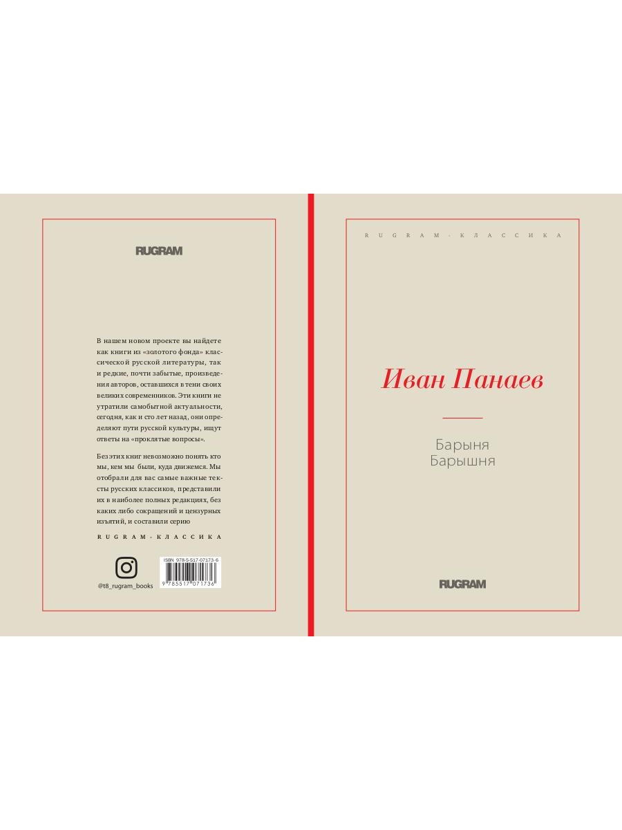 В нашем новом проекте вы найдете как книги из «золотого фонда» классической русской литературы, так и редкие, почти забытые, произведения авторов, оставшихся в тени своих великих современников. Эти книги не утратили самобытной актуальности, сегодня, как и сто лет назад, они определяют пути русской культуры, ищут ответы на «проклятые вопросы». Без этих книг невозможно понять кто мы, кем мы были, куда движемся. Мы отобрали для вас самые важные тексты русских классиков, представили их в наиболее полных редакциях, без каких либо сокращений и цензурных изъятий, и составили серию RUGRAM-КЛАССИКА. Вашему вниманию представляется книга Ивана Ивановича Панаева «Барыня», «Барышня».| Издательство | Т8 RUGRAM |