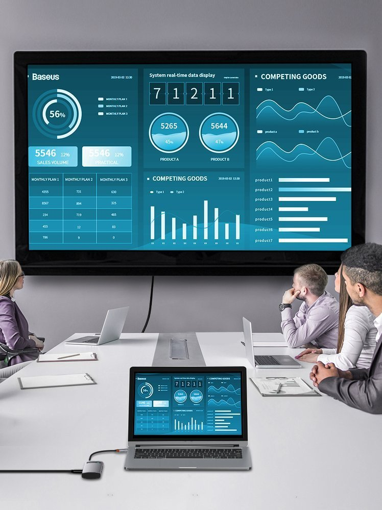 Ноутбуки и традиционные компьютеры - лишь некоторые из устройств, поддерживаемых этим адаптером. Вы можете подключить к нему свой телефон или планшет с такой же легкостью. Этот HUB превратит ваше мобильное устройство в эффективную рабочую станцию и позволит вам работать как на настоящем компьютере. Подключите мышь, клавиатуру и внешний накопитель. А если в вашем телефоне есть такая функция, вы можете подключить даже монитор.