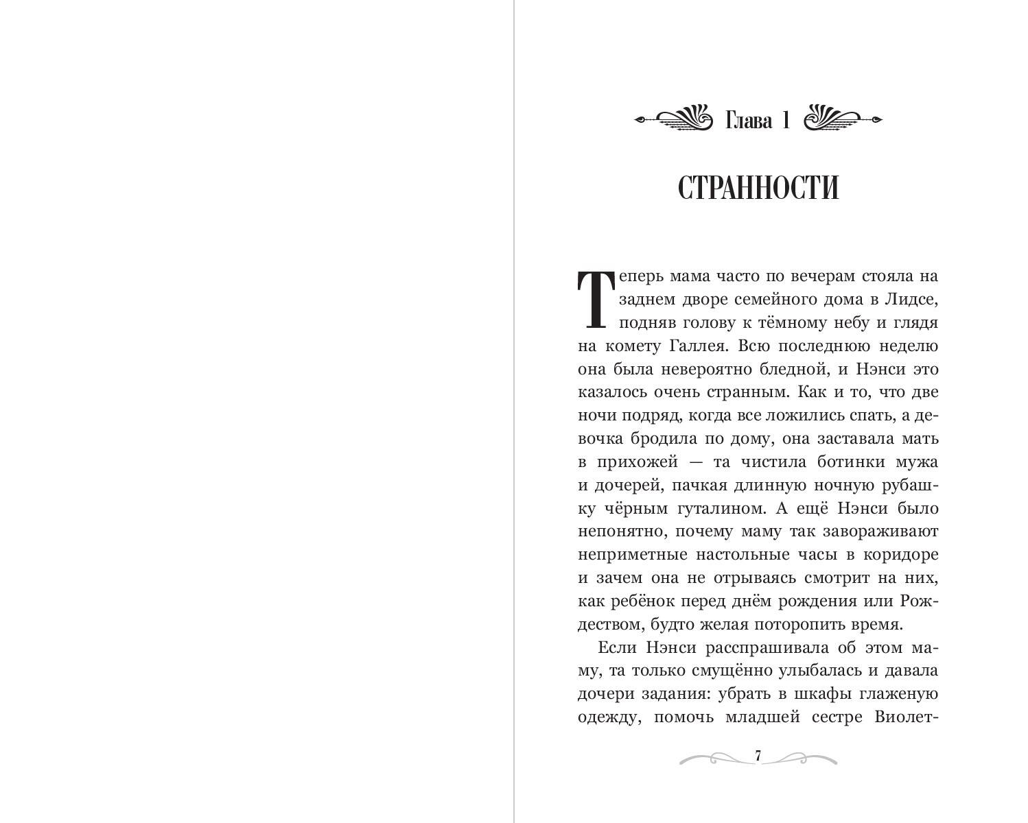 Здесь всегда закрыты занавески. На предметах - странные инициалы. А ещё в этот дом никогда не приходят гости… И именно сюда переехала семья Нэнси! Теперь девочке и её сестре Виолетте нельзя покидать дом. А сама мама втайне куда-то исчезает по ночам. Девочка в недоумении: почему мама приняла такое решение? И какие секреты она скрывает? Захватывающее расследование в сеттинге старой Англии! Мрачные семейные тайны, которые держат в напряжении до последней страницы. Оформление в трендовой стилистике: на обложке главная героиня, внутри - классный макет с заставками и письмами. Эта история выбрана книгой месяца, а сама автор номинирована на престижные литературные премии.| Издательство | ООО "Издательство "Эксмо" |