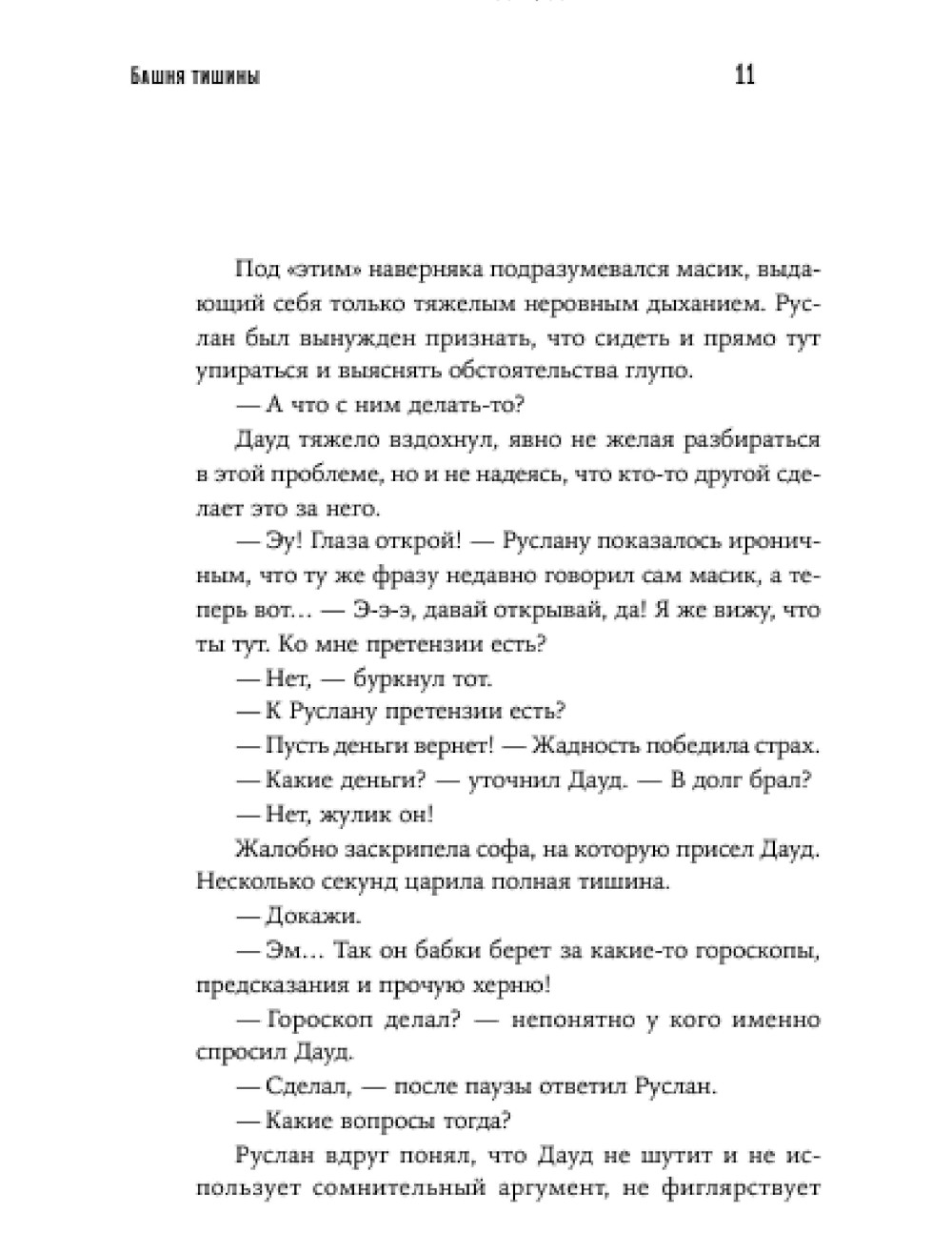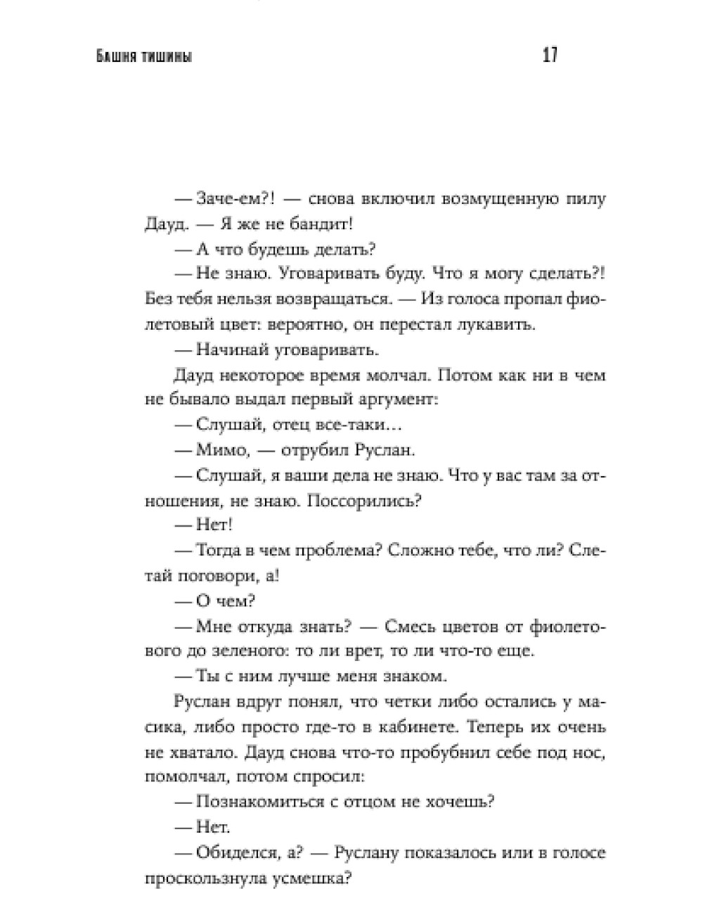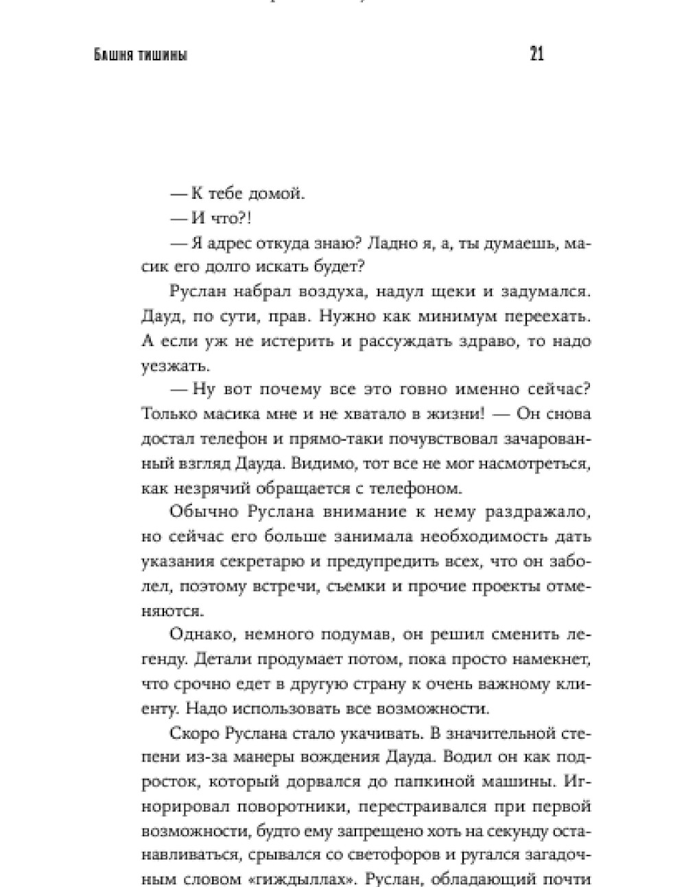 «Башня тишины», родившаяся как книжный сериал, - это авантюрный триллер про слепого экстрасенса-самозванца, который выдает себя за зороастрийского мага Шахривара, продает амулеты и проводит обряды для богатых клиенток. Однажды обстоятельства вынуждают его отправиться в Баку, где ему предстоит увидеться с бросившим его в детстве отцом, отправиться на поиски пропавшей сестры, оказаться в центре политических интриг и встретиться лицом к лицу со своим настоящим даром. Прочная привязка событий в жанре магического реализма к реальным топонимам - Девичьей башне, заповеднику Гобустан, городу Шемахе и Нардаранской крепости - добавляет роману достоверности и неповторимого колорита.| Издательство | Альпина нон-фикшн |
