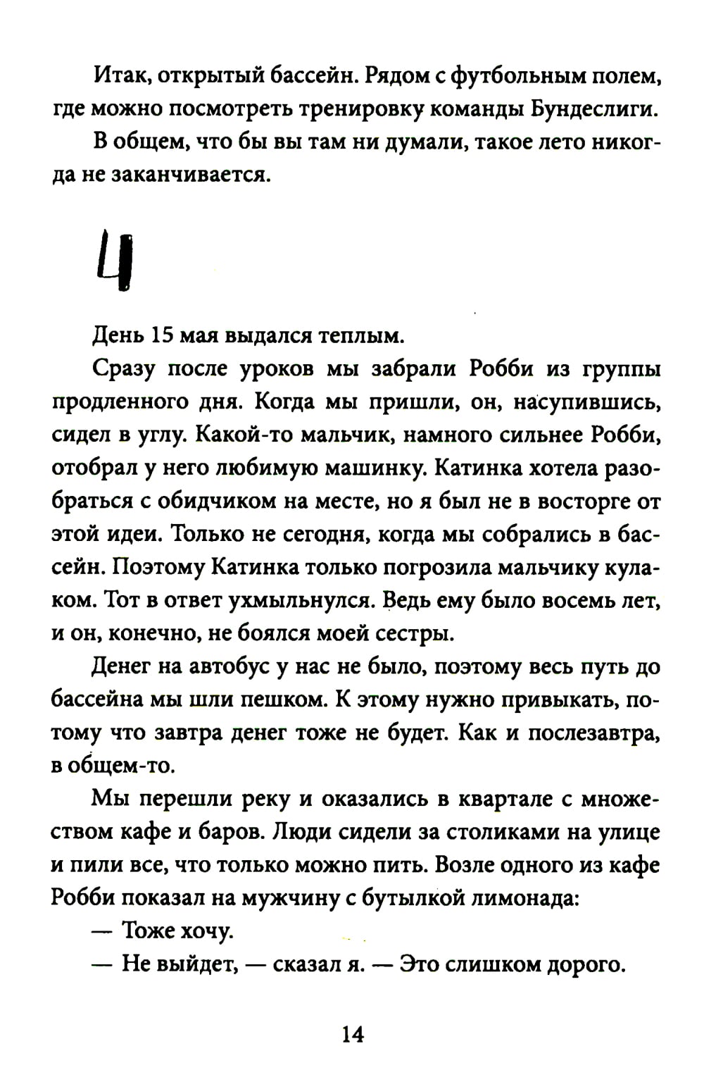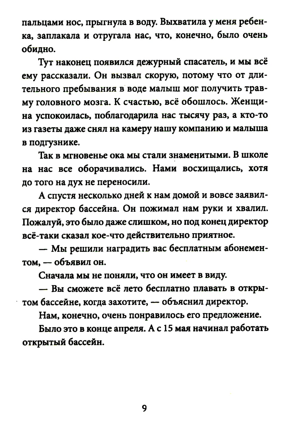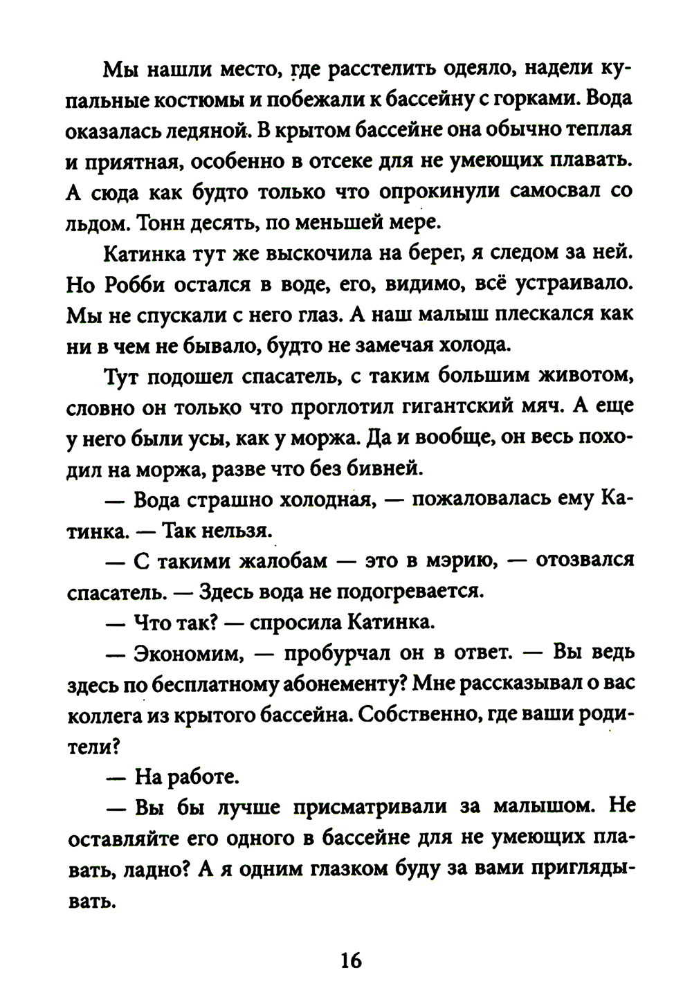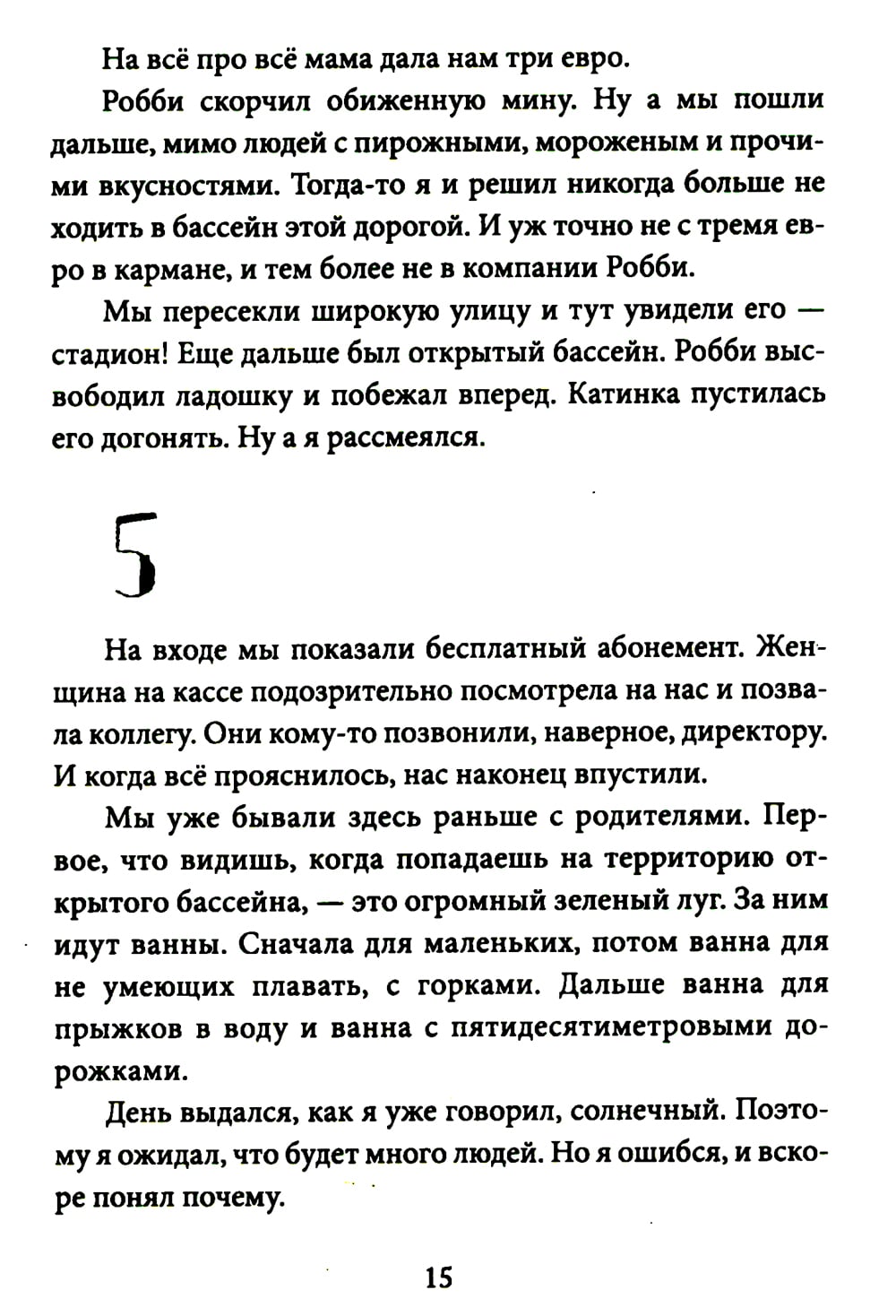 Знакомьтесь, это семья Буковски. Не вся, конечно, но значительная ее часть. По крайней мере, так они сами думают. Десятилетний Альф, спешащий штурмовать вышки и высоты. Мечтатель Робби, который больше всего на свете любит смотреть на облака. Подлинный философ, пусть и всего семи лет от роду. Ну и куда же без Катинки - взрослой не по годам сестры, которая всегда всё знает лучше всех. Этим трем счастливчикам повезло заполучить абонемент в открытый бассейн на все лето. Целое лето под открытым небом... столько всего может случиться! Первая любовь - ослепительная, как солнце; первое разочарование - горькое и саднящее; первый страх и первая победа над ним - дорогая, как золото. А еще настоящее приключение - дерзкая авантюра, о которой и подумать немыслимо. Так пускай же все случится!| Издательство | Самокат |
