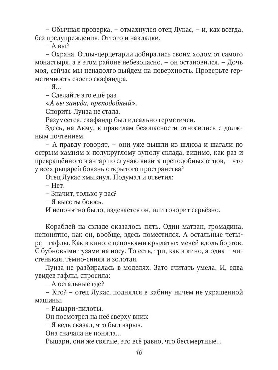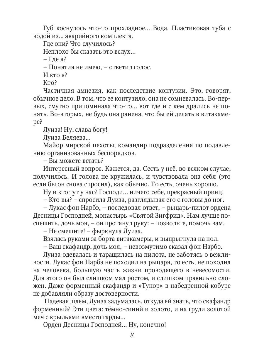 Лукас фон Нарбэ, потомок древнего рода, рыцарь-пилот ордена Десницы Господней, по праву признан Первым Рыцарем галактической империи Шэн. Его искусство боя сравнимо лишь с его милосердием к мирянам, а про его набожность, справедливость и неукоснительное исполнение заповедей ходят легенды. Лукас фон Нарбэ, защитник империи Шэн, был уверен, что живет в самом лучшем и справедливом мире. Но однажды ему пришлось выбирать между своей совестью и жизнью тысяч людей, между своей правдой, и правдой лучшего и справедливого мира. А когда перед таким выбором встает тот, кто носит фамилию фон Нарбэ, миру тоже приходится делать выбор.| Издательство | Т8 RUGRAM |