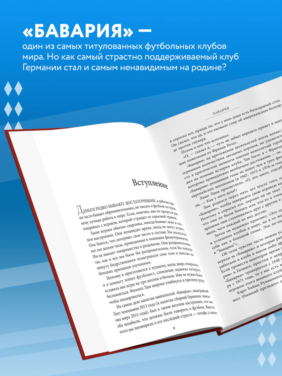 Мюнхенская «Бавария» - это самый страстно поддерживаемый клуб в Германии и одновременно самый ненавистный. Но он остается самым успешным: клуб практически на протяжении всей клубной истории находится на вершине немецкого и европейского футбола. И сейчас немецкий футбол находится в центре внимания, а «Бавария» - на его авансцене. Доминирование в национальном первенстве, фантастически успешные выступления в еврокубках, свой неповторимый стиль игры и бизнес-управления. И они достигли этого без громких скандалов, рекордных трансферных сделок и неиссякаемых денежных вливаний владельцев-магнатов.