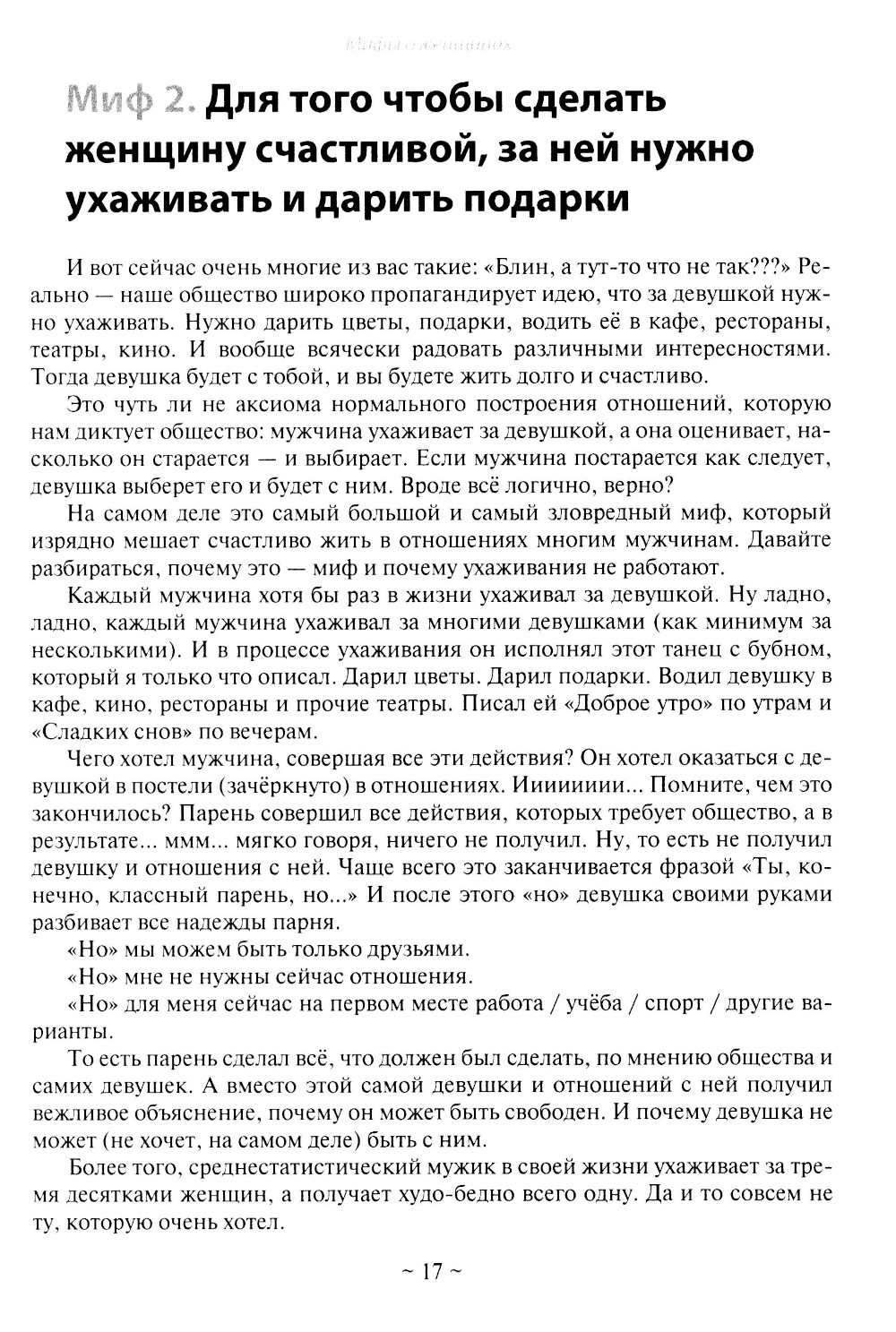 Почему у мужчин не складываются отношения с женщинами? Почему даже если мужчина вкладывается в женщину, старается для неё, дарит цветы, подарки и отдаёт ей всю зарплату, счастливых отношений у него не будет? Почему в мире практически не осталось пар, которые живут счастливо: без ссор, конфликтов, скандалов, споров и измен? Чего на самом деле хотя женщины? В книге даны ответы на самый главный вопрос: в чём секрет счастливых отношений? Что мужчина должен дать женщине, чтобы у него с ней получились отношения, в которых он будет счастлив? На самом деле, всё просто: нужно закрывать все Базовые потребности женщины, и тогда женщина будет счастлива. Она не будет выносить мозг, бежать с подружками в караоке или общаться с другими мужчинами. Автор очень подробно разбирает Базовые потребности женщины и даёт рекомендации, которые сработают.| Издательство | Галактика |