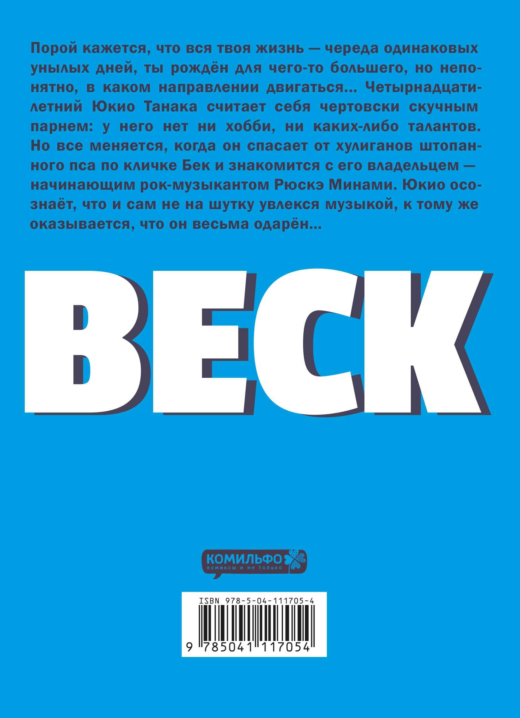 Культовая манга про юность, музыку и дружбу - наконец-то в России! Порой кажется, что вся твоя жизнь - череда одинаковых унылых дней, ты рождён для чего-то большего, но непонятно, в каком направлении двигаться... Четырнадцатилетний Юкио Танака считает себя чертовски скучным парнем: у него нет ни хобби, ни каких-либо талантов. Но все меняется, когда он спасает от хулиганов штопанного пса по кличке Бек и знакомится с его владельцем - начинающим рок-музыкантом Рюскэ Минами. Юкио осознаёт, что и сам не на шутку увлекся музыкой, к тому же оказывается, что он весьма одарён…| Издательство | ООО "Издательство "Эксмо" |