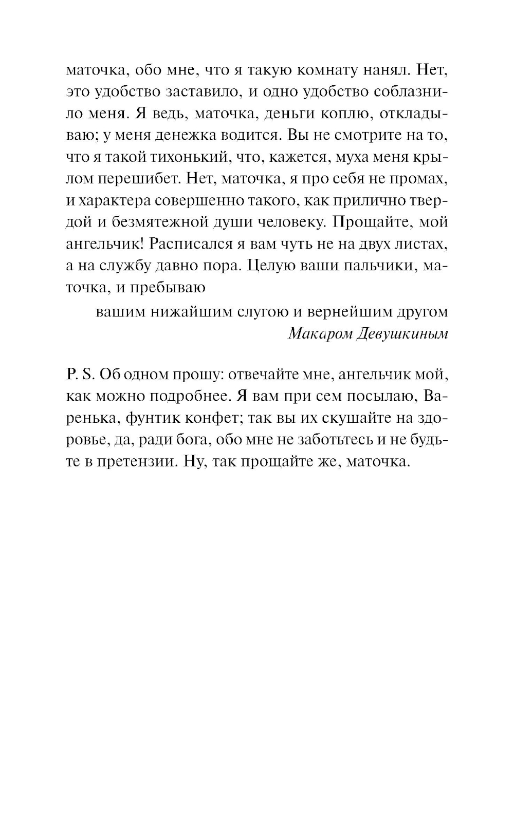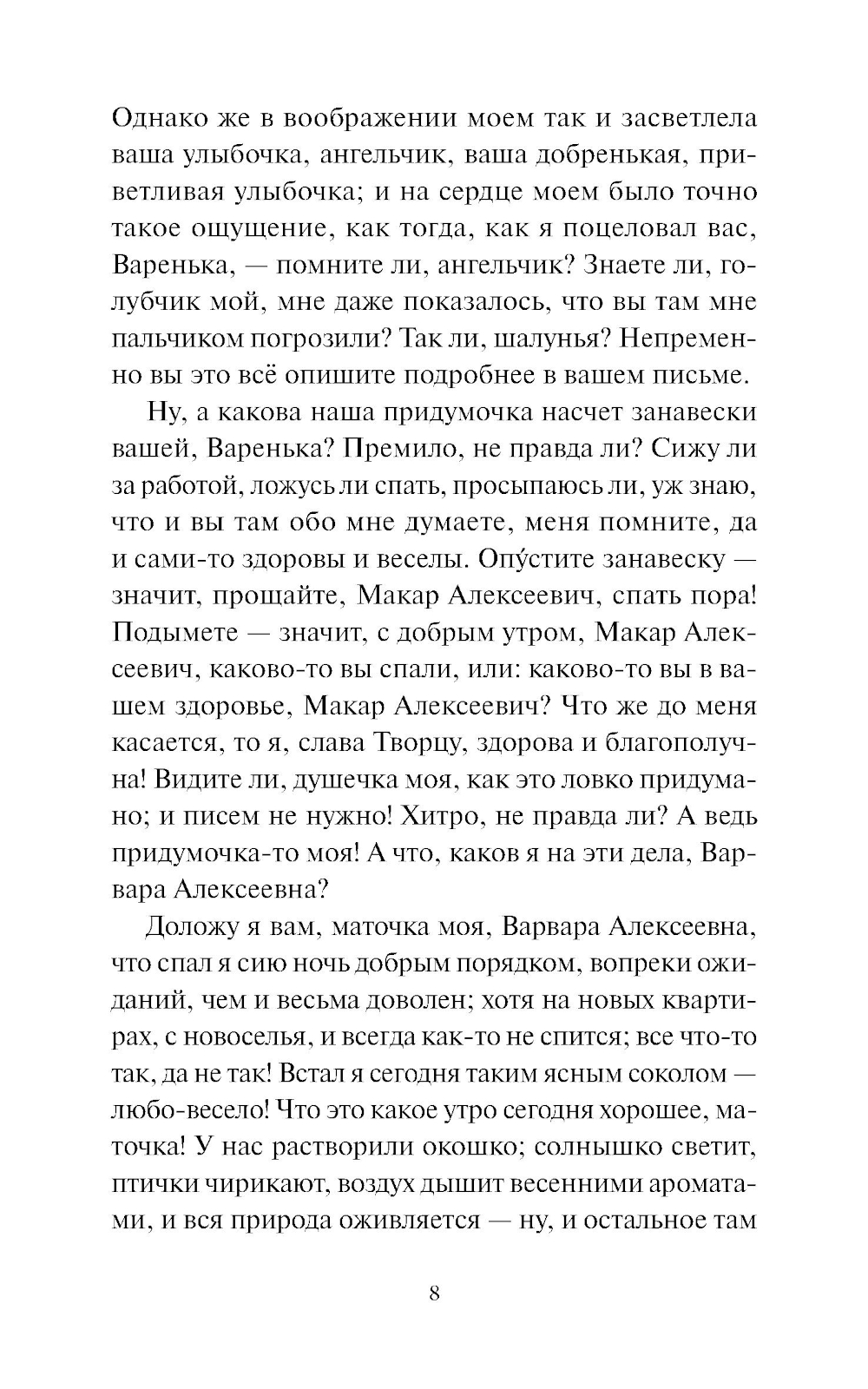Мелкий чиновник Макар Девушкин помогает осиротевшей дальней родственнице Вареньке устроить свою жизнь в Петербурге. Он - неуклюж, нелеп и часто смешон. Она - юна, наивна и едва держится на плаву. В противостоянии безразличному огромному миру у двух одиноких людей есть только одно спасение - это писать пронзительные письма друг другу. Прообразы для своего первого произведения Достоевский собирал буквально вокруг себя: с детства он собственными глазами видел горести и радости бедных людей, пациентов своего отца, служившего врачом в Мариинской больнице; а сестра Достоевского, Варвара, вдохновила его на создание персонажа Вареньки своими детскими воспоминаниями.| Издательство | Манн, Иванов и Фербер |