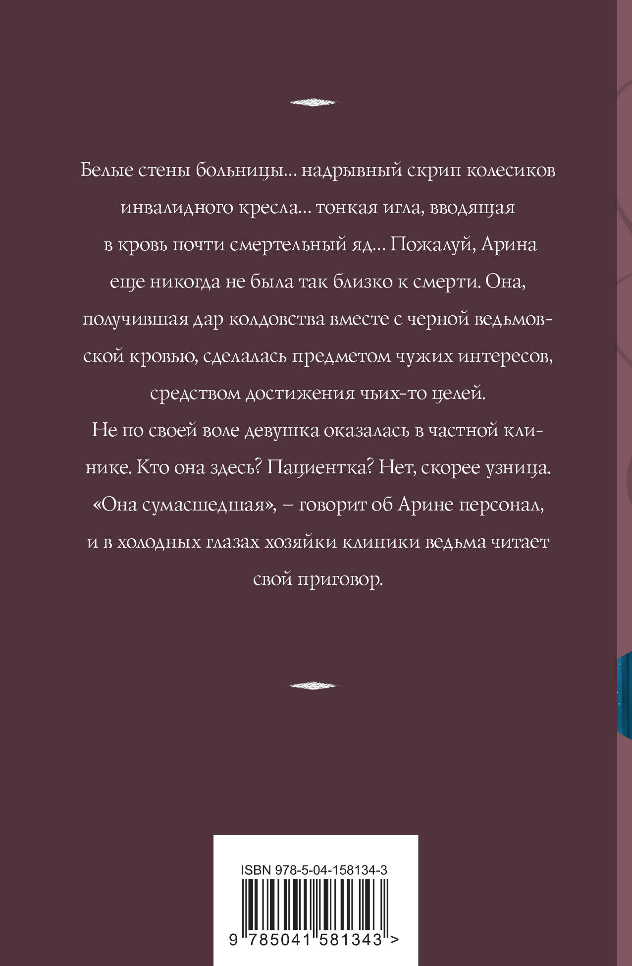 Белые стены больницы… надрывный скрип колесиков инвалидного кресла… тонкая игла, вводящая в кровь почти смертельный яд… Пожалуй, Арина еще никогда не была так близко к смерти. Она, получившая дар колдовства вместе с черной ведьмовской кровью, сделалась предметом чужих интересов, средством достижения чьих-то целей. Не по своей воле девушка оказалась в частной клинике. Кто она здесь? Пациентка? Нет, скорее узница. «Она сумасшедшая», - говорит об Арине персонал, и в холодных глазах хозяйки клиники ведьма читает свой приговор. Беги, ведьма, беги, или умрешь. Татьяна Корсакова - популярный автор любовно-авантюрных романов с элементами мистики. Из-под ее пера вышло более двух десятков книг. Сюжеты рождаются из городских легенд, народных сказаний, древних книг и собственной буйной фантазии.| Издательство | Эксмо |