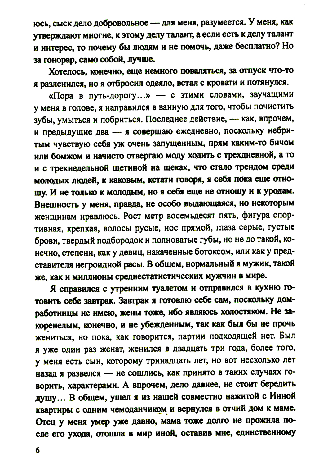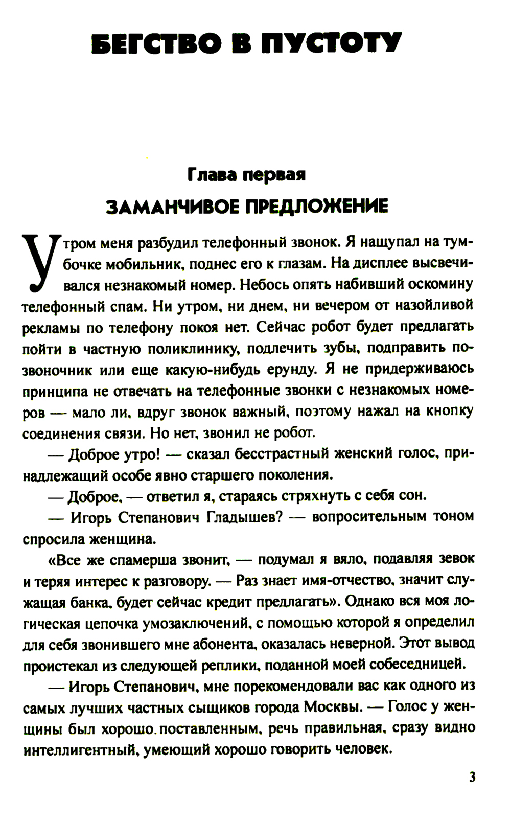 В книгу вошли два остросюжетных романа, объединенные одним главным героем - частным сыщиком Игорем Гладышевым. В первом - «Бегство в пустоту» - к нему обращается богатая вдова Наталия Царапкина с просьбой отыскать убийцу ее сына Ивана. Все говорит о том, что это приятель убитого Илья Леденев, но он находится в бегах. Игорь соглашается отыскать преступника, даже не представляя, что берется за смертельно опасное для него дело... Во втором - «Письмо неизвестной» - он по просьбе Татьяны Неделькиной разыскивает ее мужа Николая, пропавшего при странных обстоятельствах. Взявшись за это дело, Гладышев идет по следам Неделькина и распутывает хитроумно задуманное тяжкое преступление...| Издательство | Вече |