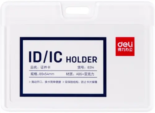 Бейдж горизонтальный для пропуска "Deli", цвет: белый, 54х89 мм, арт. 8314white