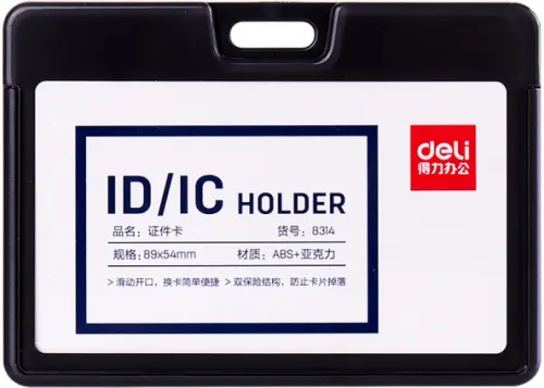 Бейдж горизонтальный для пропуска "Deli", цвет: серый, 54х89 мм, арт. 8314gray
