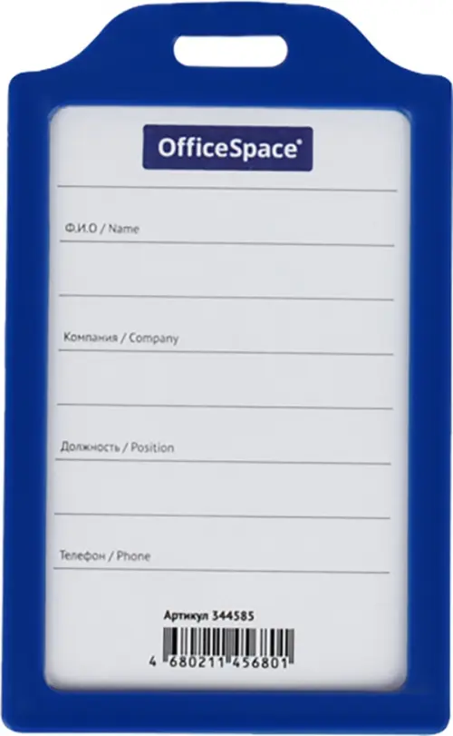 Бейдж вертикальный с жестким каркасом синего цвета предназначен для ношения пропуска, визитки, именной карточки. Без держателя. Упакован в ОПП пакет.