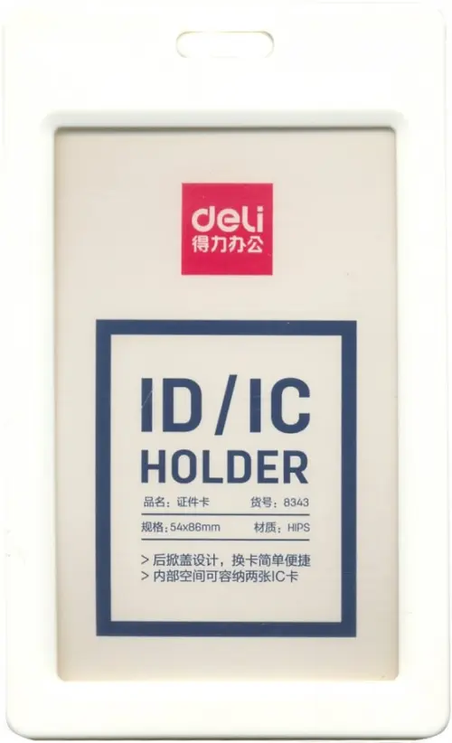 Бейдж вертикальный для пропуска "Deli", цвет: белый, 90х54 мм, арт. 8343WHITE