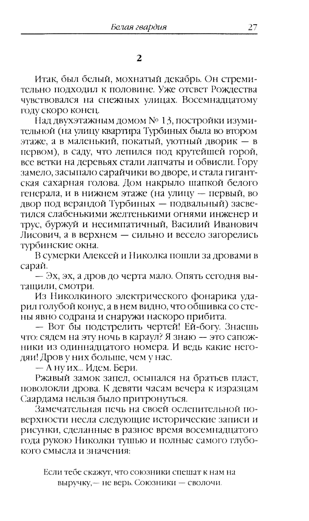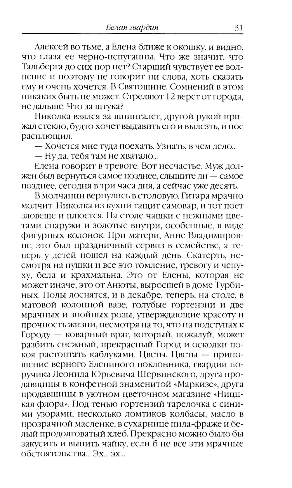 Михаил Афанасьевич Булгаков (1891-1940) - известный советский писатель, драматург, режиссер и врач. В творчестве Булгакова литературоведы отмечают особенное умение соединить историческую реальность и художественный вымысел, благодаря чему его тексты воспринимаются как записки очевидца. В автобиографическом романе «Белая гвардия» писатель представил быт семьи из числа русской интеллигенции, оказавшейся в самой гуще событий Гражданской войны на Украине 1918 года, когда немцы покинули Город и на их место пришли войска Петлюры. Прототипами героев стали родственники, друзья и многочисленные знакомые дома Булгаковых, который вместе с улицами Киева послужил декорациями описываемых в романе событий.| Издательство | Омега-Л |
