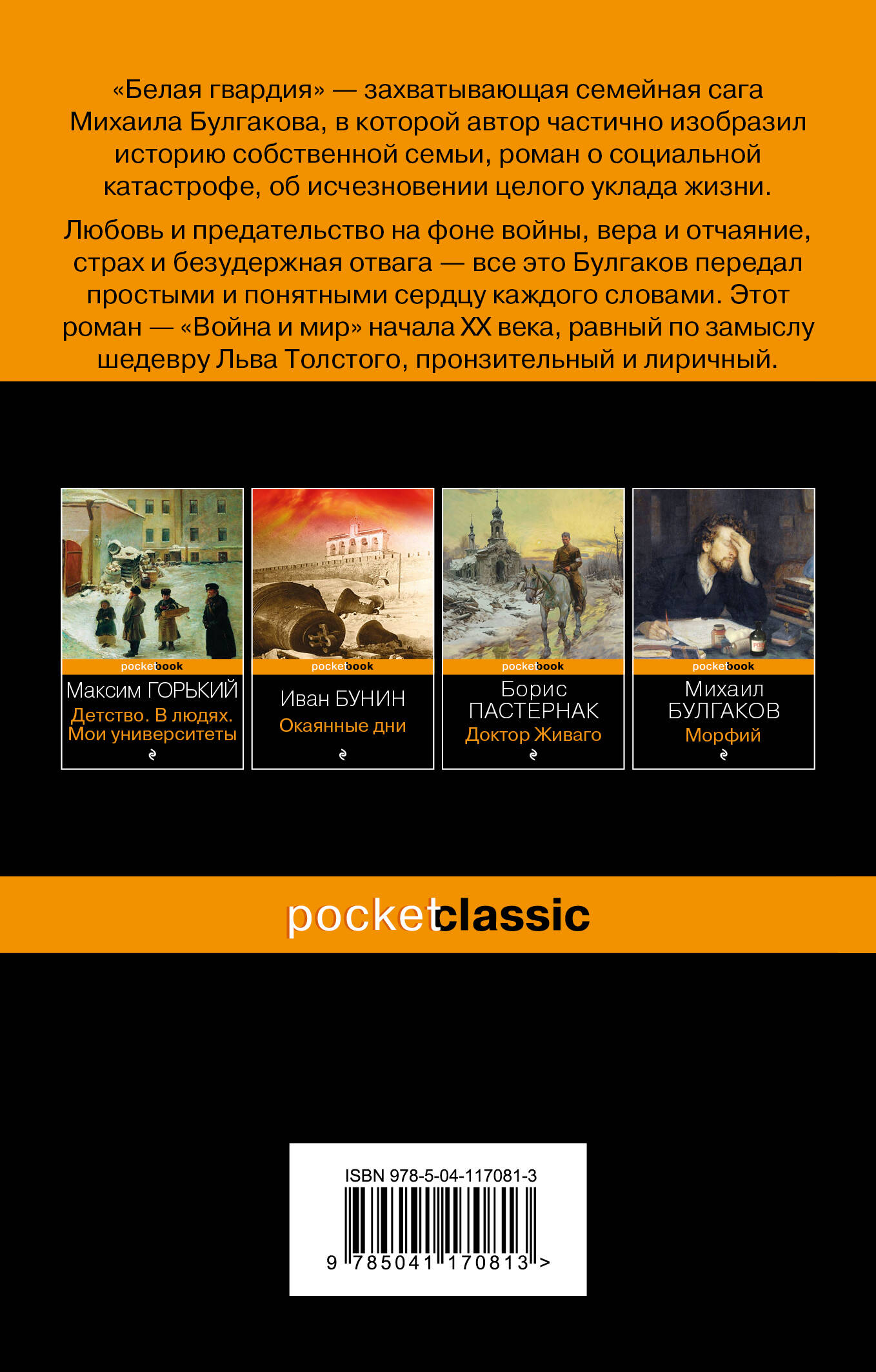 В сценическом исполнении роман «Белая гвардия» известен как пьеса «Дни Турбиных» - она не сходит с театральных подмостков и по сей день, радуя нас светлыми, героическими и такими близкими образами любимых персонажей.| Издательство | ООО "Издательство "Эксмо" |