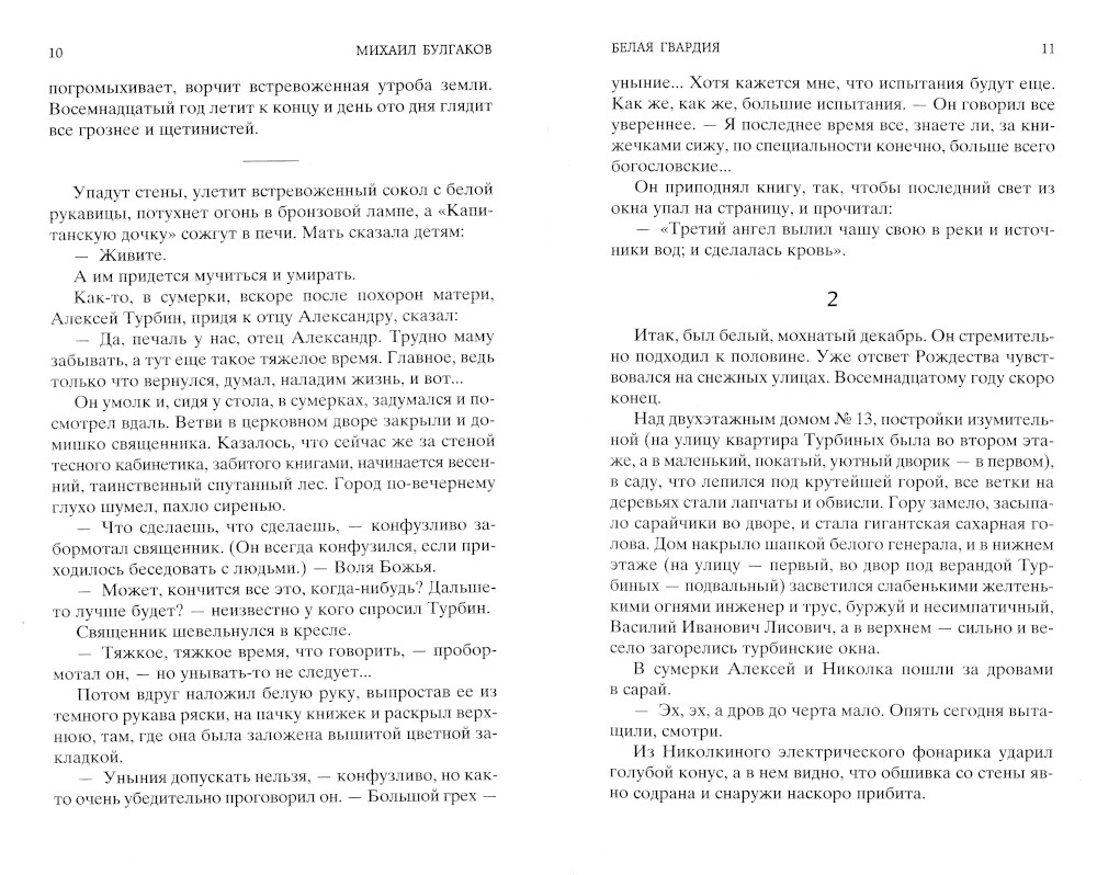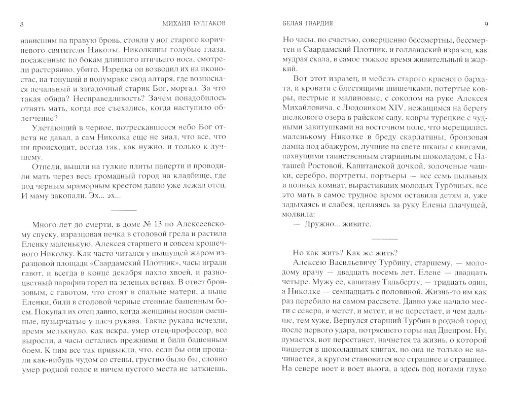 Роман «Белая гвардия» - это история о «смутной мгле», павшей на родную землю, это история Гражданской войны, страшного братоубийственного времени, история краха традиций и устоев, история кровопролития, рассказанная глазами очевидца и участника событий. Работу над романом «Белая гвардия» писатель начал еще в 1922 году, а в марте 1923 года в журнале «Россия» уже появилось сообщение о том, что М. Булгаков заканчивает роман. «Белая гвардия» - первая большая вещь Булгакова, и настроение, с которым Булгаков входил в русскую литературу, отразилось на всем его дальнейшем творчестве. В этой первой булгаковской «большой прозе» уже звучат мотивы его последнего, «закатного романа» «Мастер и Маргарита».| Издательство | Азбука |