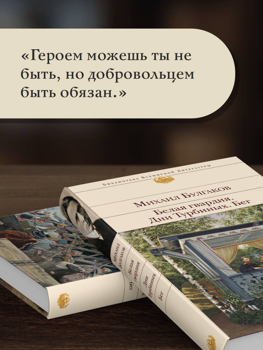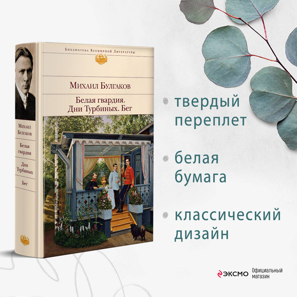 В этой книге собраны: роман «Белая гвардия», пьесы «Дни Турбиных» и «Бег», а предваряет их статья о трудных взаимоотношениях Михаила Булгакова с советским правительством и его театральных работах, подготовленная автором журнала «Эксмо» Сашей Филбар. Роман «Белая гвардия» рассказывает о Гражданской войне. Булгаков описывает реально происходившие события в Киеве в 1918 году, а у многих персонажей были существующие прототипы, поэтому роман имеет не только художественную, но и документальную ценность. Критика приняла его неоднозначно, советская власть и эмигрантские круги сочли его слишком лояльным противоположной по убеждениям стороне. Задумываясь как часть большой трилогии о годах Гражданской войны, «Белая гвардия» осталась единственной написанной частью, но послужила основой для пьесы «Дни Турбиных». Пьеса была написана по заказу МХАТа в 1925 году и годом позднее разрешена к постановке. Как и роман, она описывает события Гражданской войны и личную трагедию семьи Турбиных, происходившую на фоне слома эпох и крушения старой жизни. Пьеса «Бег» написана на основе воспоминаний второй жены Булгакова об эмиграции в период Гражданской войны и также описывает реальные события. При жизни автора пьеса не была поставлена, ее раскритиковал лично Сталин: «"Бег" в том виде, в каком он есть, представляет антисоветское явление». Впервые игралась на сцене в 1957 году.| Издательство | ООО "Издательство "Эксмо" |