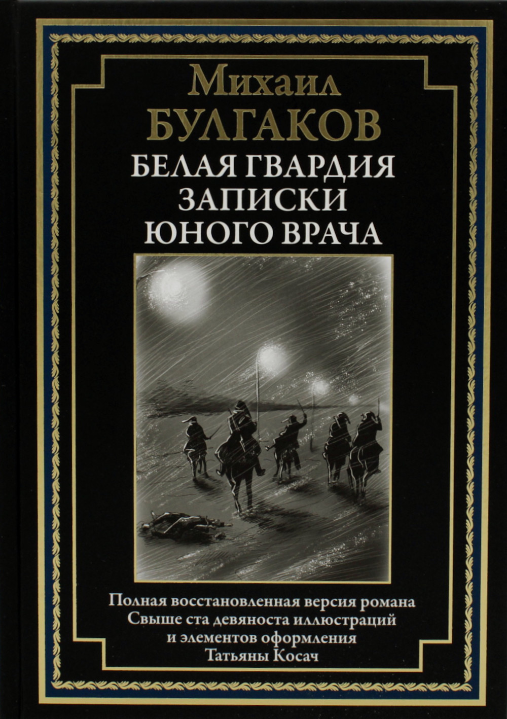 Помимо знаменитого романа «Белая гвардия» Михаила Афанасьевича Булгакова, который впервые печатается полностью, без сокращений, в книгу включен не менее известный цикл рассказов писателя «Записки юного врача», дополненный рассказами «Я убил», «Морфий» и «Необыкновенные приключения доктора». Тексты проиллюстрированы рисунками и буквицами современной художницы Татьяны Косач и снабжены комментариями литературоведа Лидии Яновской.| Издательство | СЗКЭО |