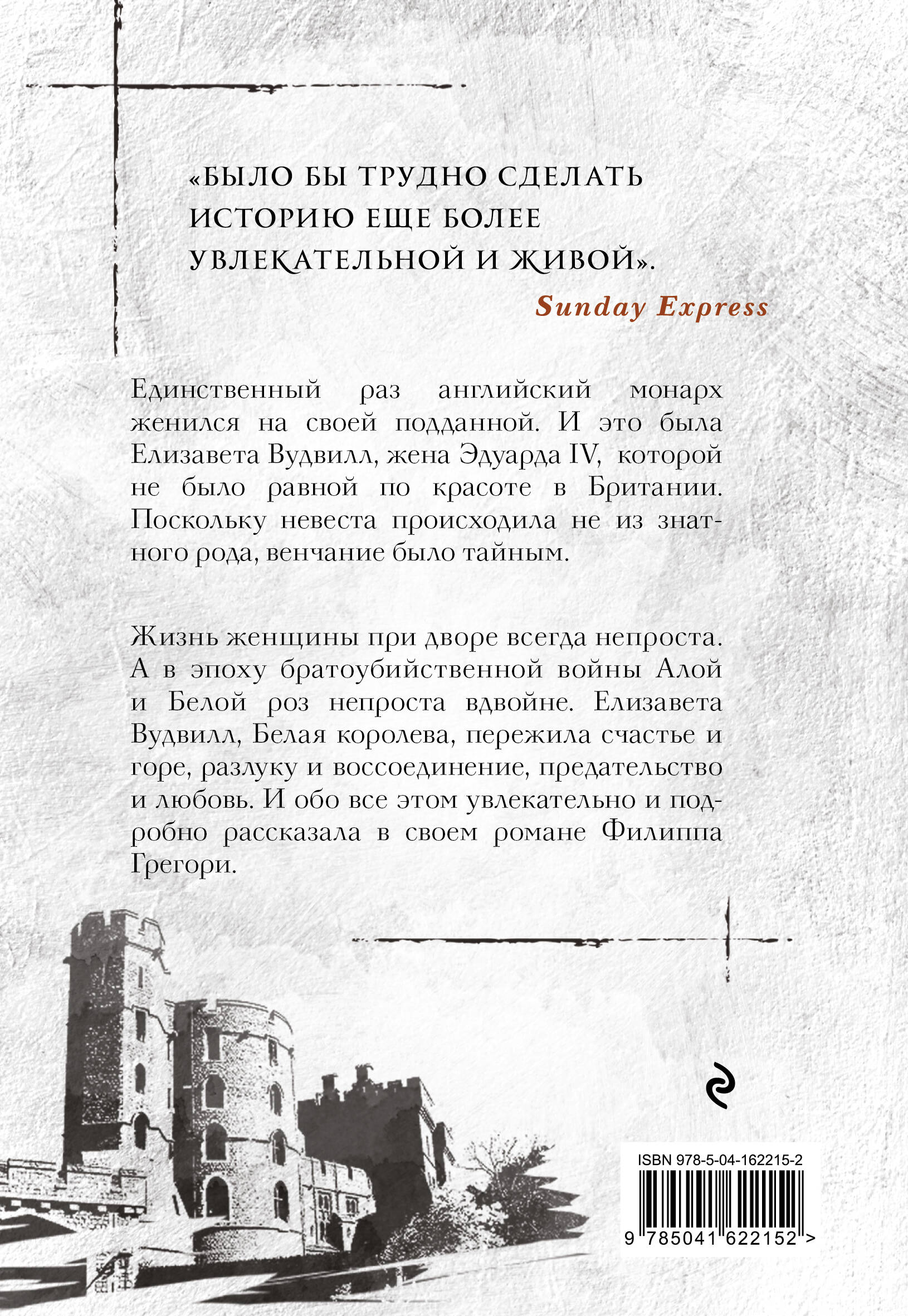 Все книги Филиппы Грегори моментально становятся бестселлерами, их с нетерпением ждут читатели по всему миру. Доктор по литературе XVII столетия, она прекрасно знает реалии, которые описывает, и умеет находить в истории королей и принцесс то, что заинтересует современного читателя. Многие произведения Грегори успешно экранизированы. Фильм «Еще одна из рода Болейн» со Скарлетт Йохансон и Натали Портман в главных ролях стал мировой киносенсацией. «Белая королева» - это история о том, что борьба за власть способна изменить до неузнаваемости даже самую невинную душу. Превращение честолюбивой, добросердечной и наивной женщины в расчетливую и хладнокровную интриганку - такова цена, которую заплатила Елизавета Вудвилл за то, чтоб примерить золотую корону. Единственный раз английский монарх женился на своей подданной. И это была Елизавета Вудвилл, жена Эдуарда IV, которой не было равной по красоте в Британии. Поскольку невеста происходила не из знатного рода, венчание было тайным. Жизнь женщины при дворе всегда непроста. А в эпоху братоубийственной войны Алой и Белой розы - непроста вдвойне. Елизавета Вудвилл, Белая королева, пережила счастье и горе, разлуку и воссоединение, предательство и любовь. И обо все этом увлекательно и подробно рассказала в своем романе Филиппа Грегори. «Было бы трудно сделать историю еще более увлекательной и живой». - Sunday Express| Издательство | Эксмо |