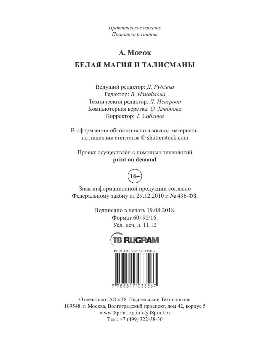 Магия издревле верно служила человеку в его стремлении познать мир. В этой книге вы узнаете о том, что же собой представляет само понятие «магия». Почерпнете также много полезной информации о таком неизменном атрибуте любого уважающего себя белого мага, как талисман. Вы узнаете о рисунках, которыми принято было украшать талисманы, об их сакральном смысле, о камнях и растениях, которые в свою очередь служат талисманами. Изучив подробно материал, изложенный в этой книге, читатель сможет помочь не только самому себе, но также своим друзьям и близким.| Издательство | Т8 RUGRAM |
