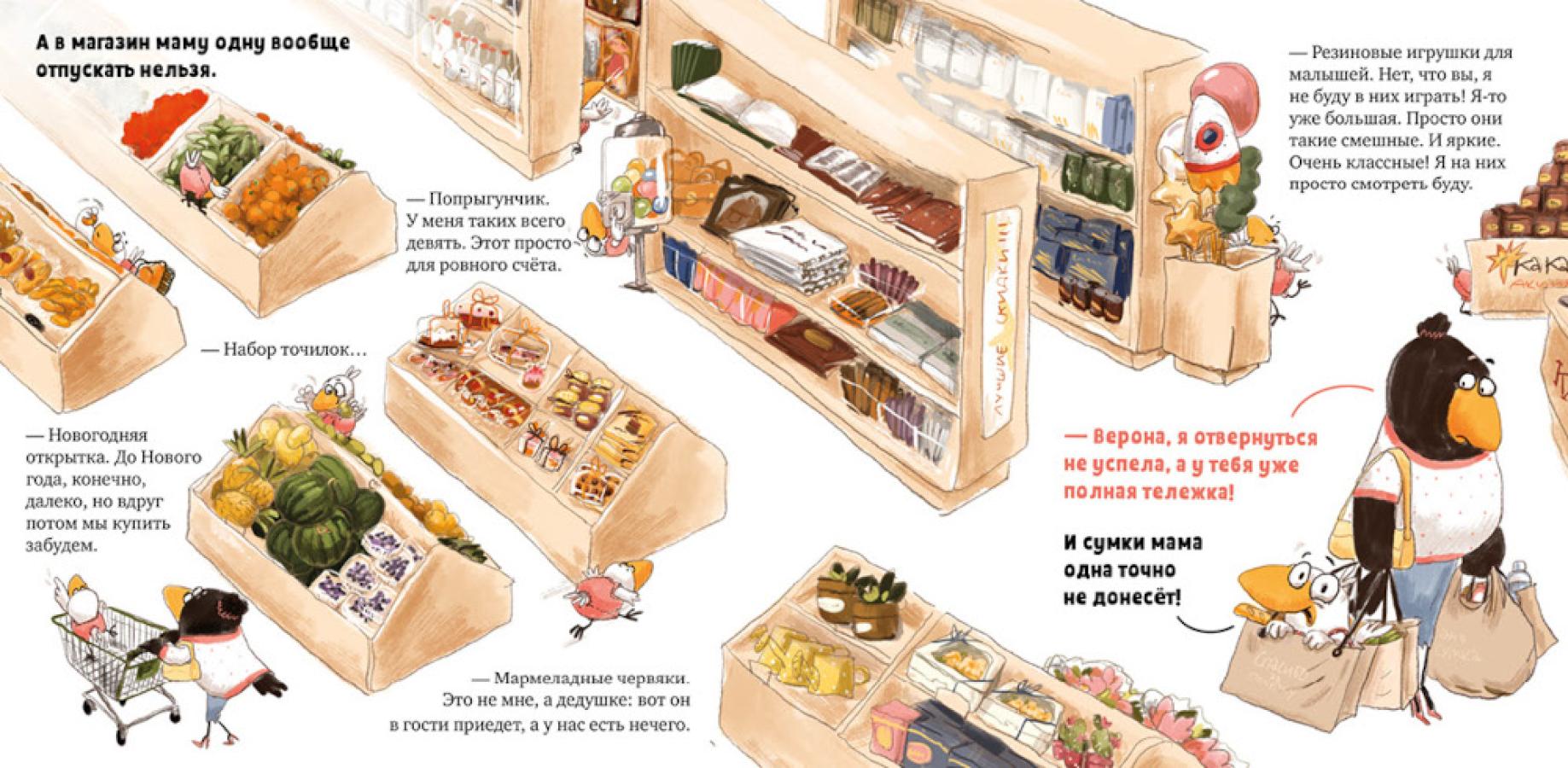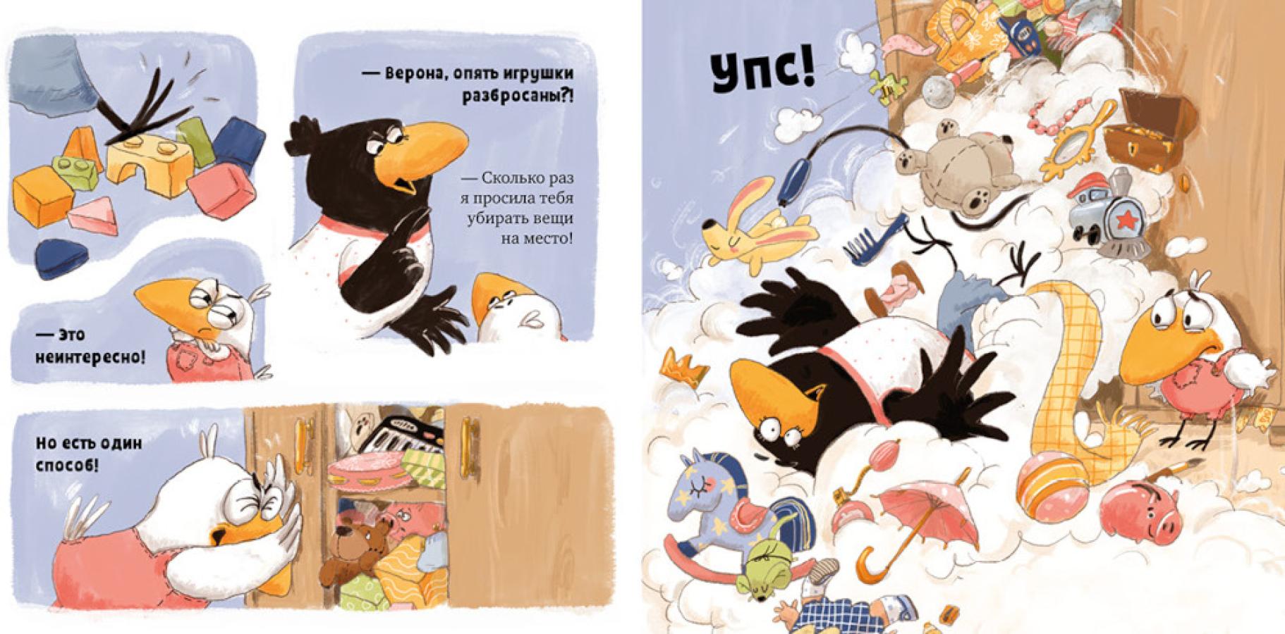 «Белая ворона Верона. Мамина помощница» - смешная история, в которой родители легко узнают своего маленького помощника и непоседу. Эта книжка - отличный повод поговорить с ребенком про домашние дела и вместе превратить их в игру! Знакомьтесь, это Верона - необыкновенная ворона с белыми перьями и неукротимой энергией. Она обаятельная, непоседливая и очень хочет помочь своей маме с домашними делами. Однако каждая попытка Вероны проявить самостоятельность оборачивается веселым хаосом. Заправка кровати превращается в воздушные пируэты, уборка - в битву с пылесосом, а мытье посуды - в мыльное цунами. Даже поход в магазин и приготовление ужина становятся настоящими приключениями, полными сюрпризов и смешных ситуаций. Получится ли у Вероны помочь маме?| Издательство | Клевер-Медиа-Групп |