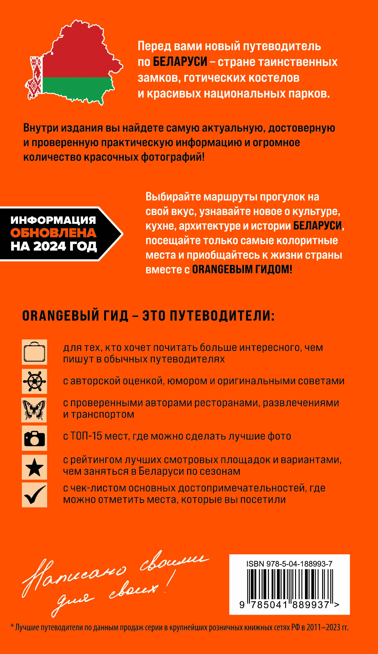 Богатая культура, европейские города, невероятной красоты костелы, вкусная еда, щедрое гостеприимство и удивительное разнообразие природы - все это Беларусь! Отправляйтесь в незабываемое путешествие по стране вместе с нашим «Оранжевым гидом»! В нем содержится актуальная и полезная информация о главных городах страны, различные маршруты на любой вкус, подсказки, что делать, если идет дождь, или где искать лучшие смотровые площадки, а также множество полезных авторских советов. Вас ждут прогулки по Минску, Бресту, Витебску, Гомелю, Гродно, Могилеву, а также информация про самые красивые замки, храмы и заповедники. Осталось только выбрать маршрут на свой вкус! Сориентироваться на местности помогут удобные карты, расположенные на страницах путеводителя. Вся информация актуальна на 2024 год.| Издательство | ООО "Издательство "Эксмо" |