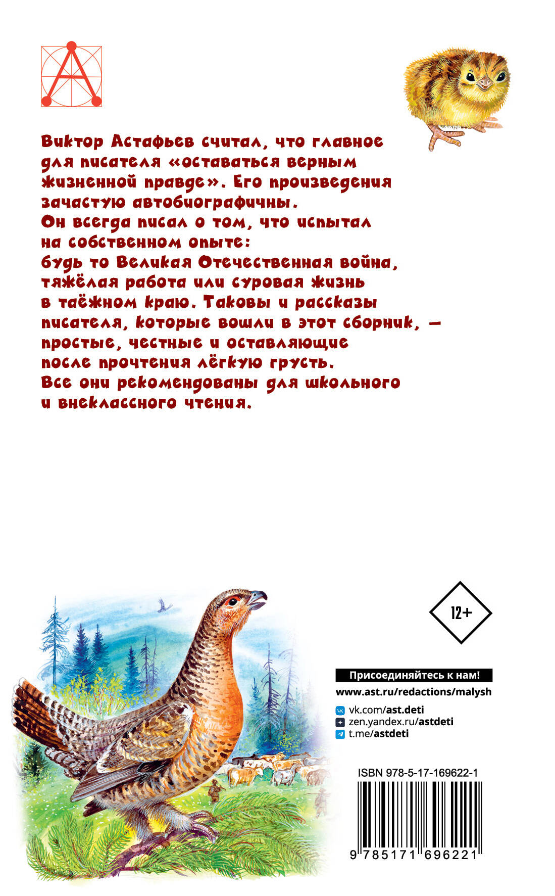 Виктор Астафьев считал, что главное для писателя «оставаться верным жизненной правде». Его произведения зачастую автобиографичны. Он всегда писал о том, что испытал на собственном опыте: будь то Великая Отечественная война, тяжёлая работа или суровая жизнь в таёжном краю. Таковы и рассказы писателя, которые вошли в этот сборник, - простые, честные и оставляющие после прочтения лёгкую грусть. Все они рекомендованы для школьного и внеклассного чтения.| Издательство | Издательство "АСТ" |