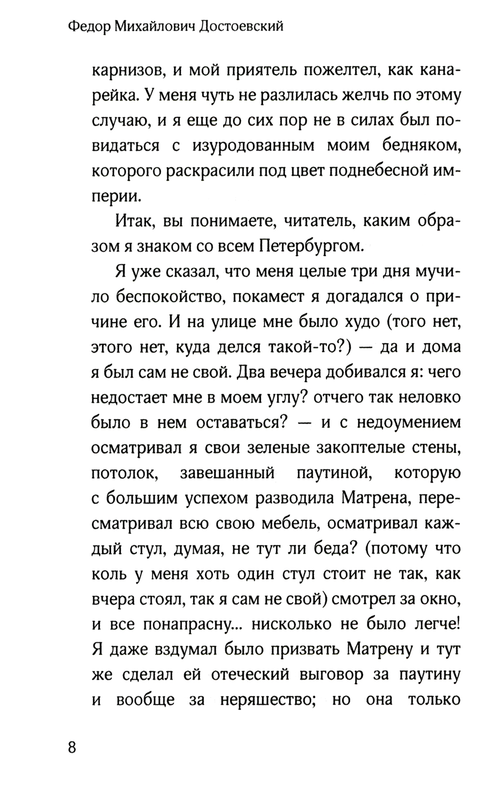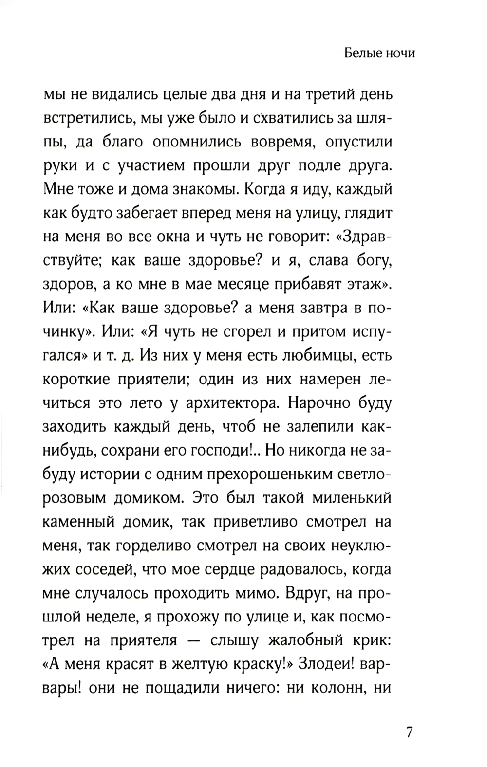 Федор Михайлович Достоевский (1821-1881) - русский писатель, философ и публицист; один из самых читаемых авторов в мире. Его творчество повлияло на многих мыслителей XX века, в числе которых Жан-Поль Сартр и Фридрих Ницше. Пройдя сложный жизненный путь, он подарил миру множество произведений, отличительной чертой которых можно назвать невыносимо глубокую печаль поистине русской души. В «Белых ночах» мечтательный герой, оторванный от жизни и мелких дел, столь волнующих окружающих, встречает молодую девушку, которая скрашивает его одиночество. Живет он на небольшое жалование и занимает незначительную должность. Из-за того, что жизнь главного героя безрадостна и в ней не разглядеть светлой будущности, он сбегает в собственный мир фантазий, в котором наконец появляется кто-то другой, способный понять его. В повести поднимаются наиболее популярные темы того времени, а именно: «маленький человек» и «мечтатель» большого города.| Издательство | Омега-Л |