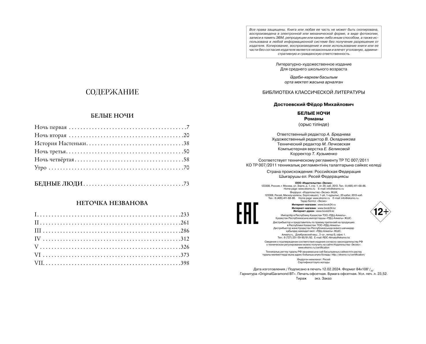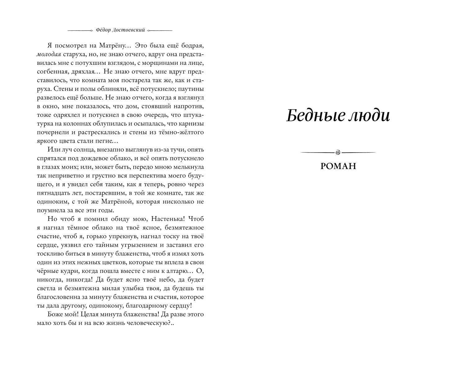 В настоящий сборник вошли романы-трагедии великого писателя Фёдора Михайловича Достоевского: «Белые ночи», «Бедные люди» и «Неточка Незванова». Разворачивающиеся на улицах Петербурга события могут показаться стороннему наблюдателю самыми мелкими и обычными делами. Но мы приближаемся к одиноко стоящей паре на набережной Невы и узнаём в мужчине искреннего героя-мечтателя, влюблённого в свою подругу Настеньку, что стоит с ним рядом. Она, в свою очередь, переживает боль от предательства, что, впрочем, не помешает ей самой предать влюблённого в неё героя. Переписка «бедных», самых обычных людей, зарабатывающих на жизнь службой и вышиванием, вскрывает все страдания и унижение от их бедности, но не духовной, а материальной. Рассказ же молодой девушки Неточки о своём несчастном детстве оборачивается разбившейся мечтой о прекрасной жизни. Мастерское изображение действительности, поразительная истина в обрисовке персонажей и глубокое понимание и художественное воспроизведение трагической стороны жизни - в этом сила и особенность русского писателя, которого история вписала в классику мировой литературы. «Библиотека классической литературы» - книги, которые помогают найти ответы на самые сложные вопросы! Издание в твёрдом переплёте.
