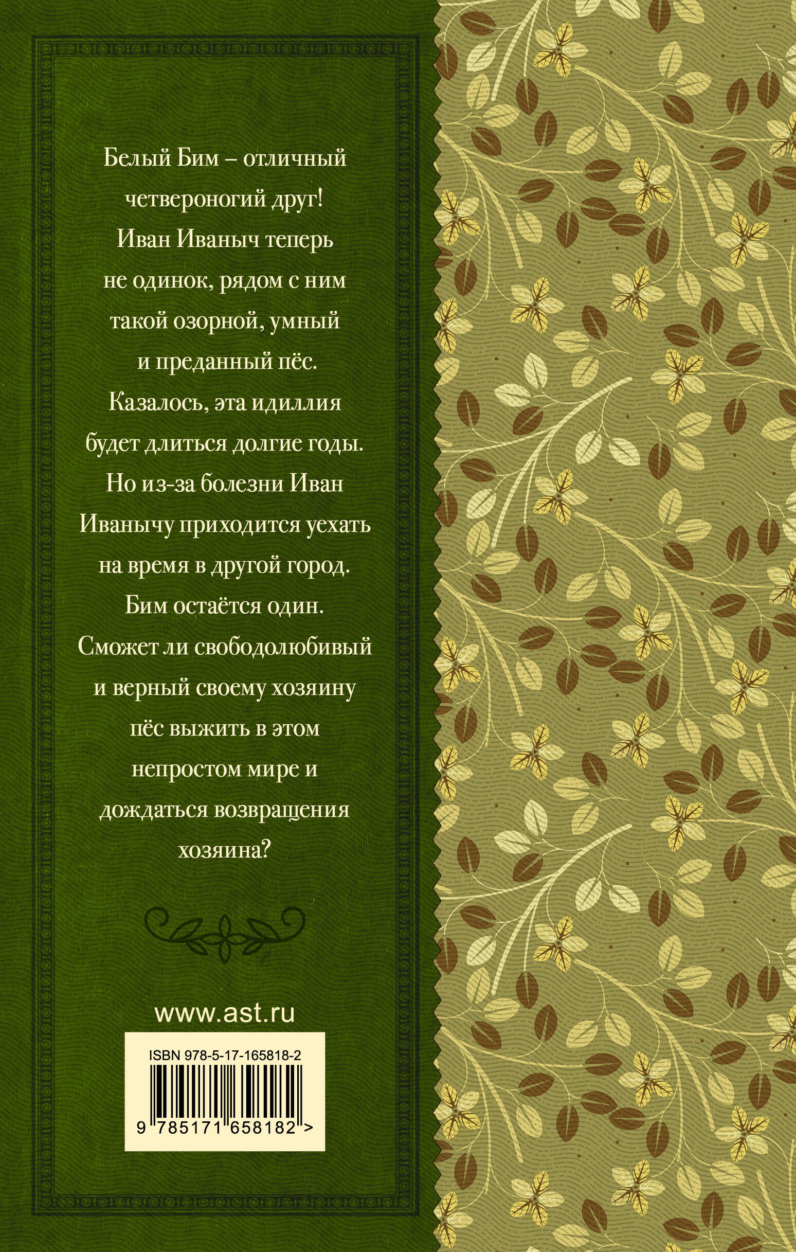 Повесть Гавриила Троепольского о собаке по имени Белый Бим и его мудром и добром хозяине раскрывает, насколько беззаветно преданными и доверчивыми могут быть братья наши меньшие. Биму повезло, такого хозяина, как у него, днём с огнём не сыщешь. Они и в правду стали настоящими друзьями: вместе идут на охоту, вместе смотрят в окно и думают каждый о своём. Но Биму предстоит пройти страшное испытание - он, весёлый и доверчивый пёс, столкнётся с жестокими и равнодушными людьми. Для среднего школьного возраста.| Издательство | Издательство "АСТ" |