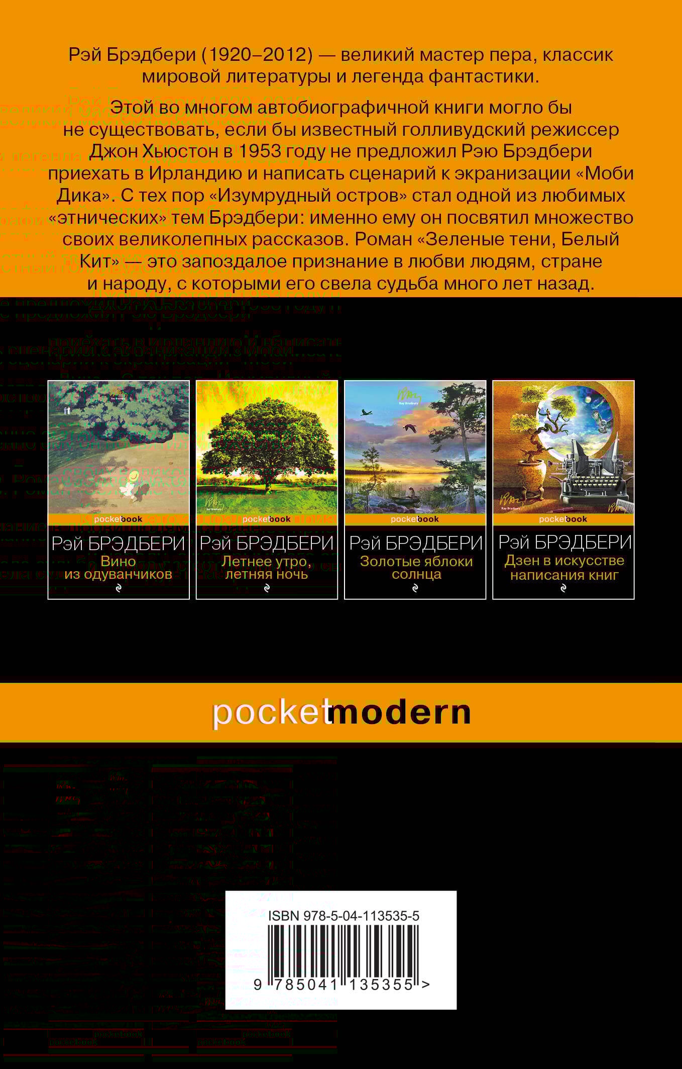 Белый Кит от Мелвилла и Брэдбери (комплект из 2-х книг: «Моби Дик, или Белый Кит» и «Зеленые тени, Белый Кит»). Классический роман Германа Мелвилла «Моби Дик, или Белый Кит» и книга, которой могло бы не существовать. Если бы известный голливудский режиссер Джон Хьюстон в 1953 году не предложил Рэю Брэдбери приехать в Ирландию и написать сценарий к экранизации «Моби Дика». Сценарий был готов, и фильм с Грегори Пеком и Орсоном Уэллсом вышел в 1956 году. А любовь к дождливому Зеленому острову и его душевным обитателям осталась с Рэем Брэдбери навсегда.| Издательство | ООО "Издательство "Эксмо" |