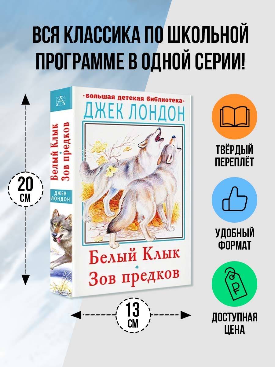 Джек Лондон (1876-1916) - американский писатель и журналист. За свою короткую жизнь он успел написать много приключенческих рассказов, повестей и романов, многие из которых входят в учебную программу школ и университетов . В эту книгу вошли две повести- "Белый Клык" и "Зов предков". Первая история поведует читателю о собаке-волке, выросшему на свободе в Северной глуши и волею случая подчинившегося человеку. Собаке-волку предначертан непростой путь, полный дружбы и жестокости, отваги и преданности. Но все эти тяготы и преграды ведут его к одной цели: поиску себя и своего места в этом мире. Вторая повесть "Зов предков" расскажет о псе Бэке, который, столкнувшись с человеческой жестокостью, ушел в стаю к волкам и стал их вожаком. Обе повести, полные жизненной мудрости, заслуженно включены в список обязательных к прочтению произведений. Для среднего школьного возраста.| Издательство | ИЗДАТЕЛЬСТВО "АСТ" |