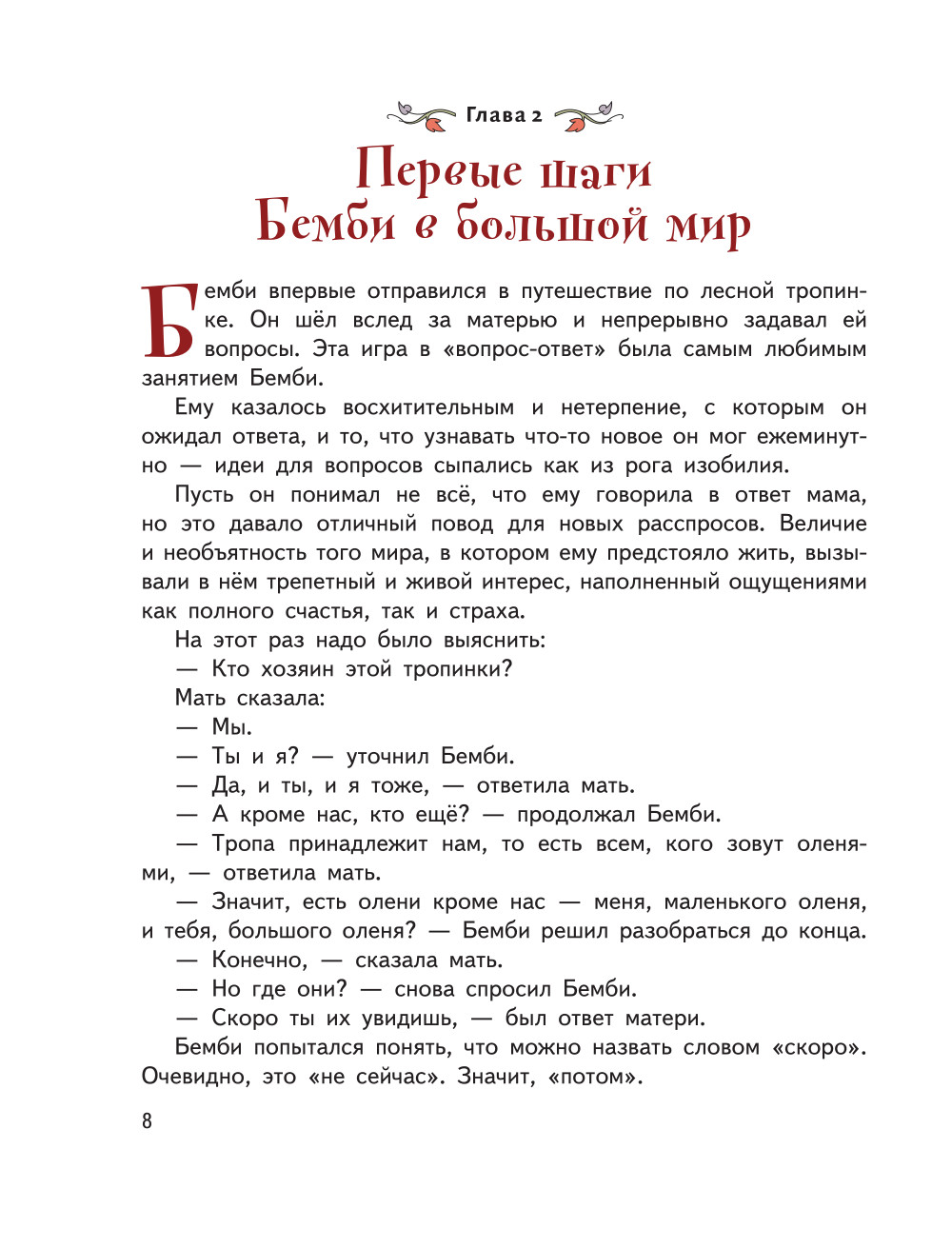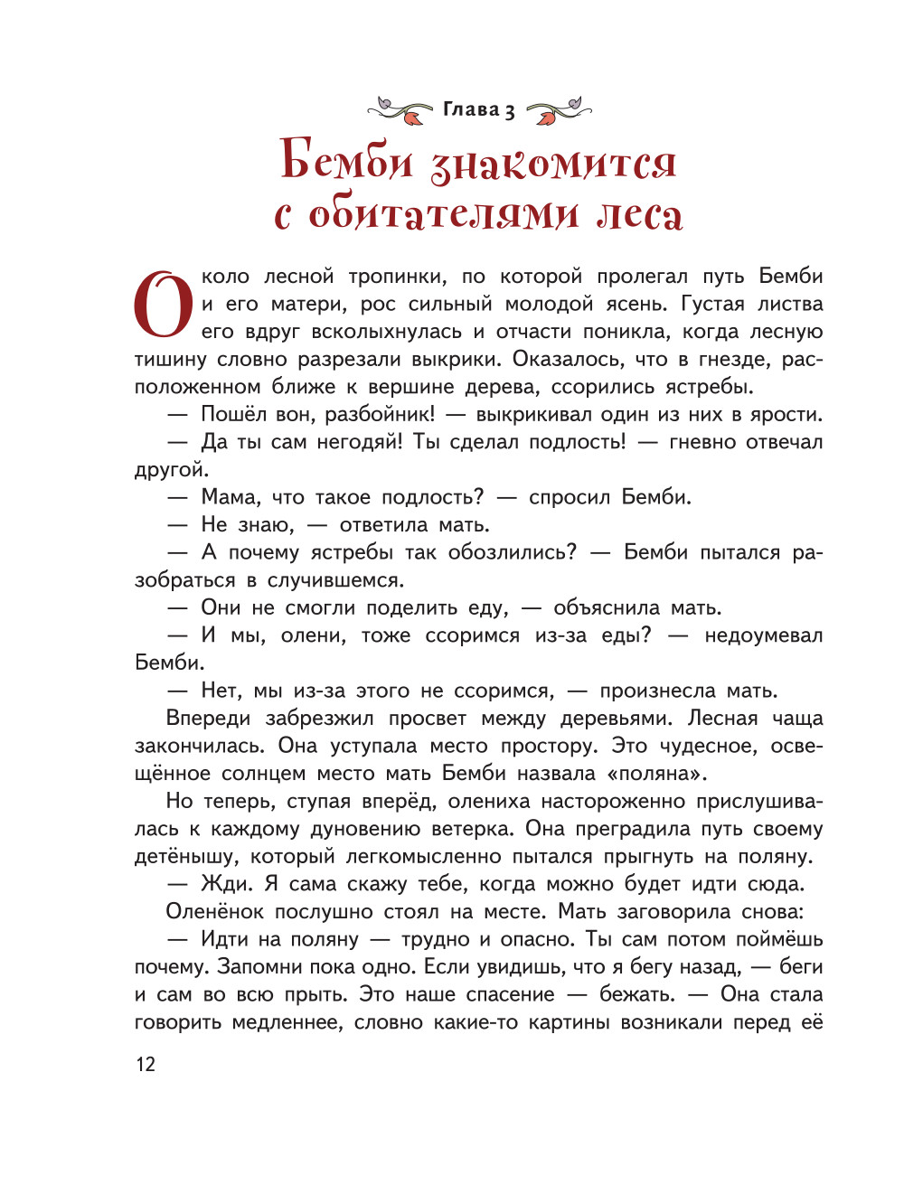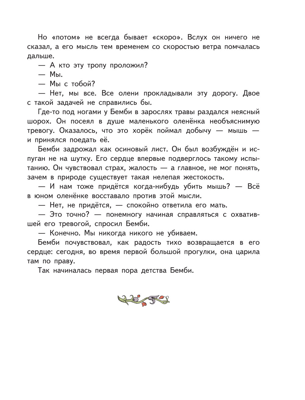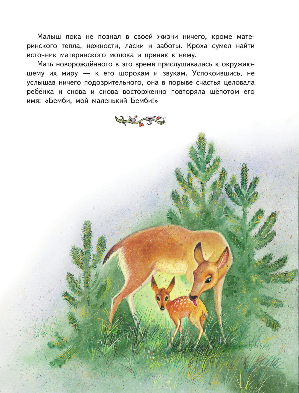 Удивительная и трогательная сказка о, пожалуй, самом известном оленёнке расскажет маленьким читателям о любви и дружбе, верности и уважении, мудрости и прощении и об извечном противостоянии Природы и Человека.| Издательство | Эксмо |