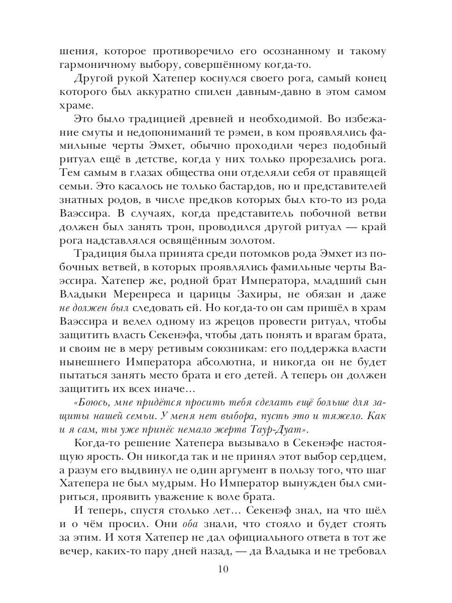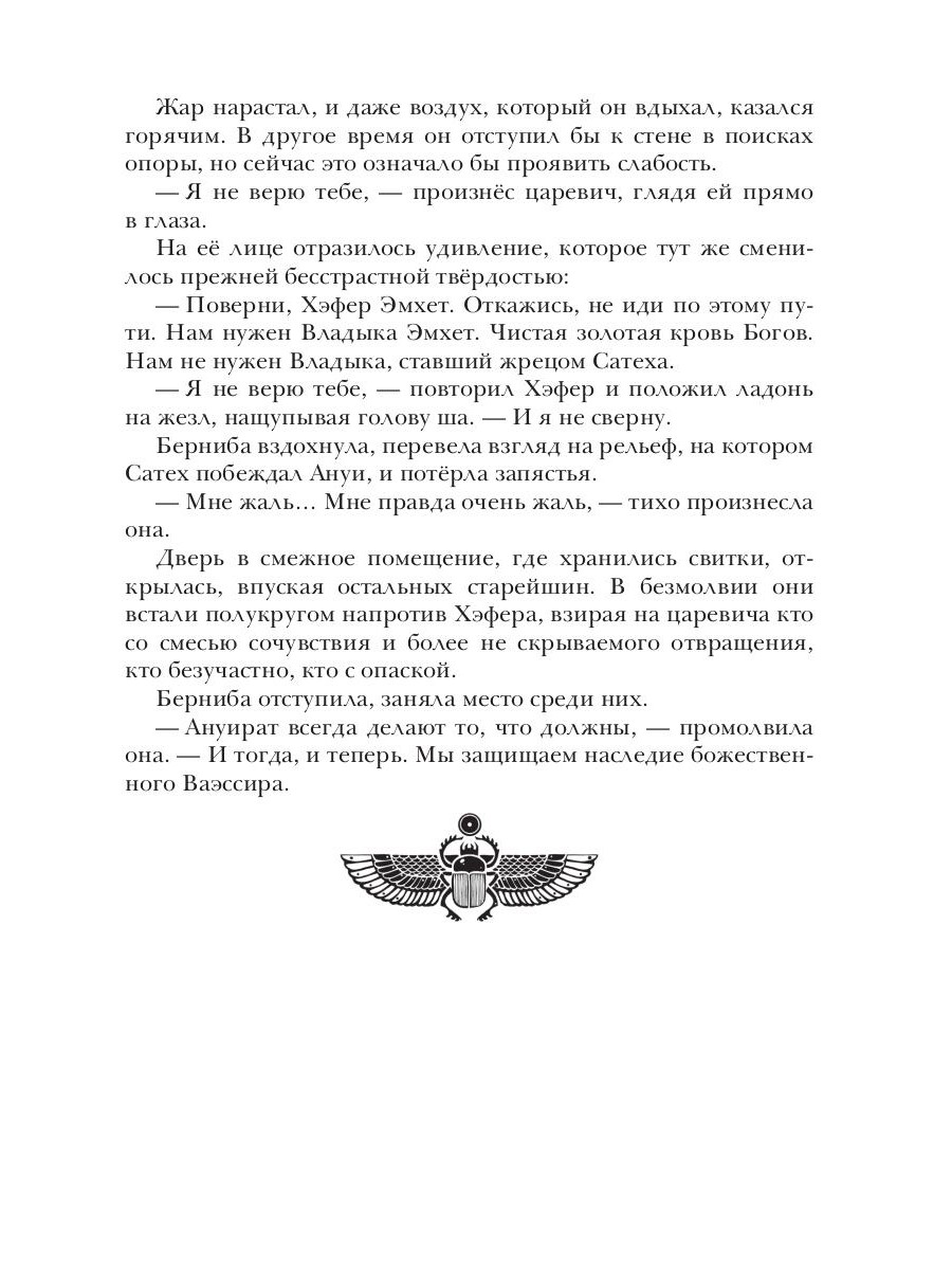 Хэфер и Тэра, преследуемые врагами трона, вынуждены искать помощи у Ануират, псоглавых стражей Владык Эмхет. Но как далеко простирается верность могучих воителей, исполняющих свой долг не больше, чем того требует древний договор? Хатепер возвращается в прямую ветвь рода Эмхет, как новый наследник трона. Императорская семья ищет пути сохранить хрупкий мир, но планы царицы всё ближе к своему воплощению. Бывший телохранитель Хэфера, заключённый в жреческой обители, узнаёт таинства происхождения народа рэмеи, а так же то, что на самом деле кроется за Проклятием Ваэссира.| Издательство | Т8 RUGRAM |