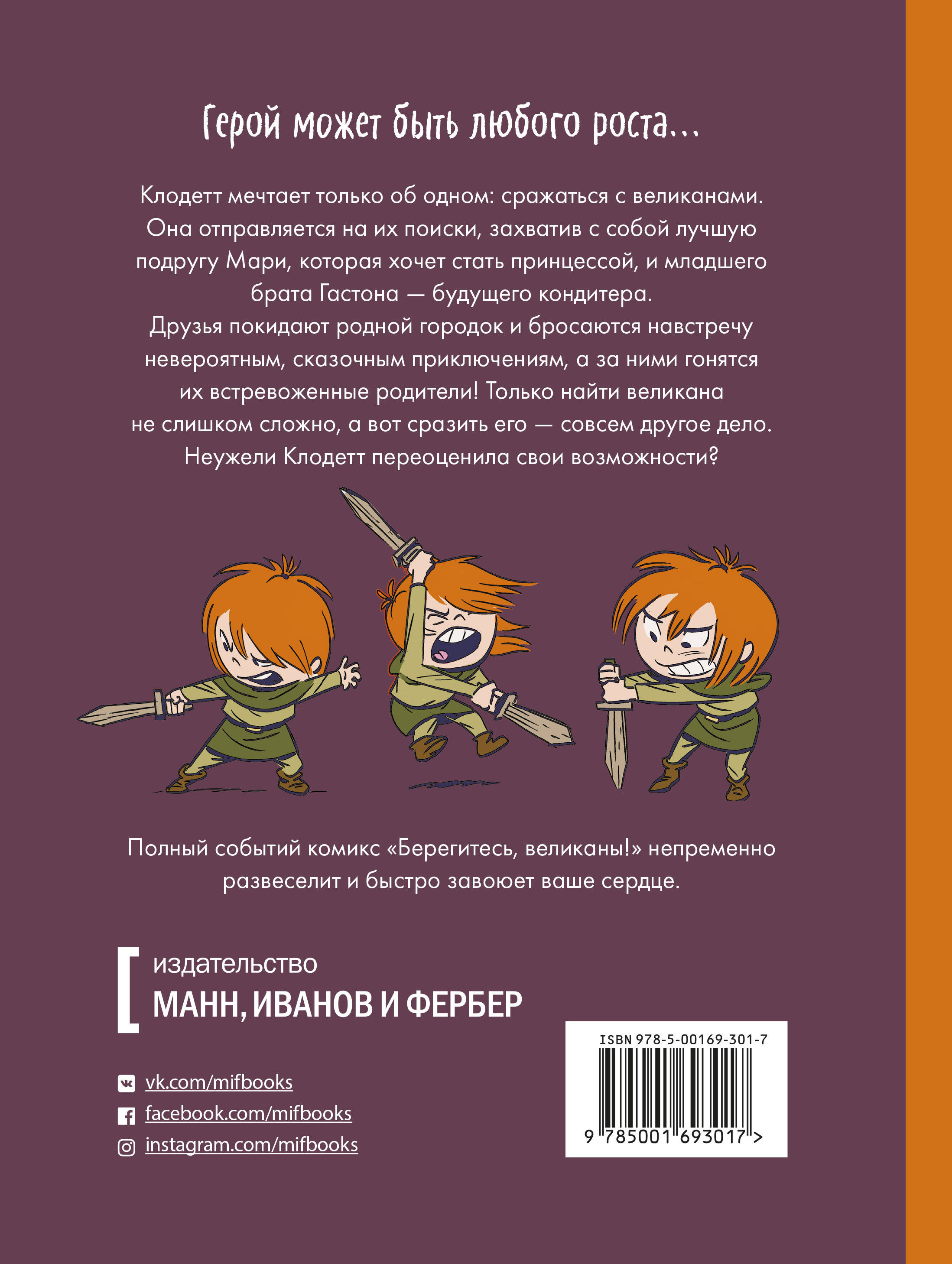 Клодетт мечтает только об одном: сражаться с великанами. Она отправляется на их поиски, захватив с собой лучшую подругу Мари и младшего брата Гастона. Друзья бросаются навстречу невероятным, сказочным приключениям. Но смогут ли они сразить великана?| Издательство | МАНН, ИВАНОВ И ФЕРБЕР ООО |
