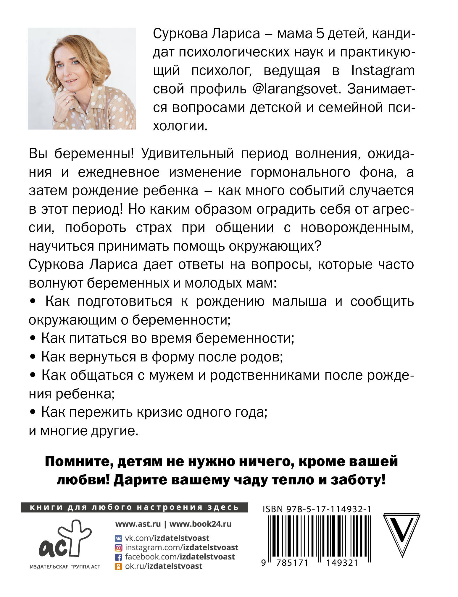 Дополненное новыми главами издание о беременности и первом годе жизни малыша от Ларисы Сурковой! Актуальные проблемы и их решения, профессиональные рекомендации по развитию и ухаживанию за малышом от мамы и кандидата психологических наук| Издательство | Издательство "АСТ" |