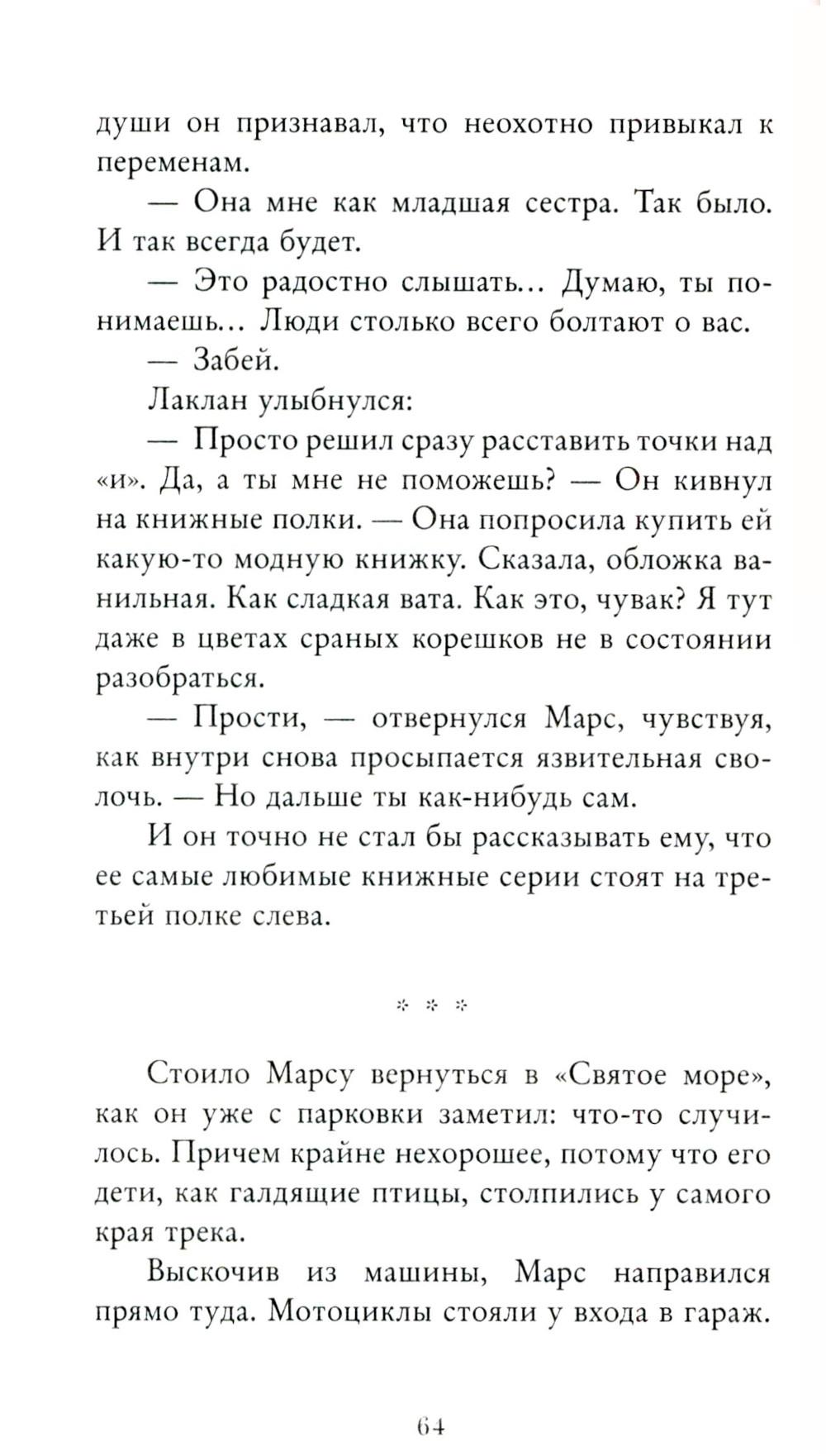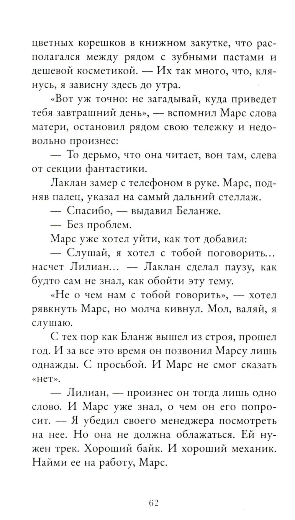 Жаклин Беланже когда-то дала клятву - быть рядом в бедности и богатстве, в болезни и здравии. Пришло время сдержать свое обещание. Ее законный муж, Реми Беланже, потерял все. Любовь, признание, карьеру и смысл жизни. Его бывший друг Марсель Андраде, наоборот, обрел второй шанс. Теперь между ними не ступени пьедестала, а задетое самолюбие. Испытание гордостью, что сложнее любых заездов. Хватит ли у двух соперников смелости признать ошибки прошлого? И хватит ли силы любви Жаклин, чтобы вернуть к жизни того, кто выгорел дотла?| Издательство | Клевер-Медиа-Групп |